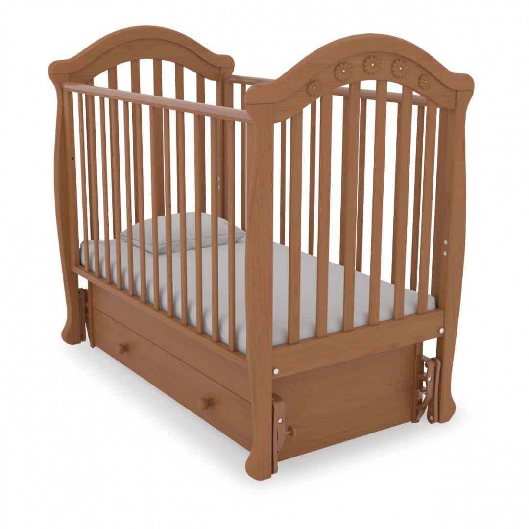 Корпус кроватки изготовлен из массива натурального кавказского бука, что гарантирует долговечность изделия.