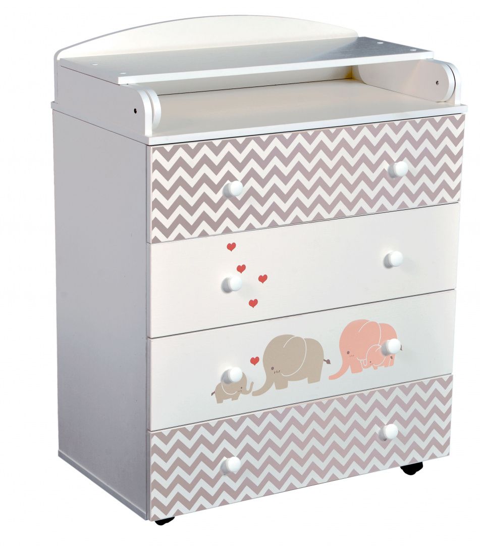 Верхняя крышка комода раскладывается книжкой и образует удобный пеленальный столик. Все торцы комода отделаны скругленными кромками из ПВХ.