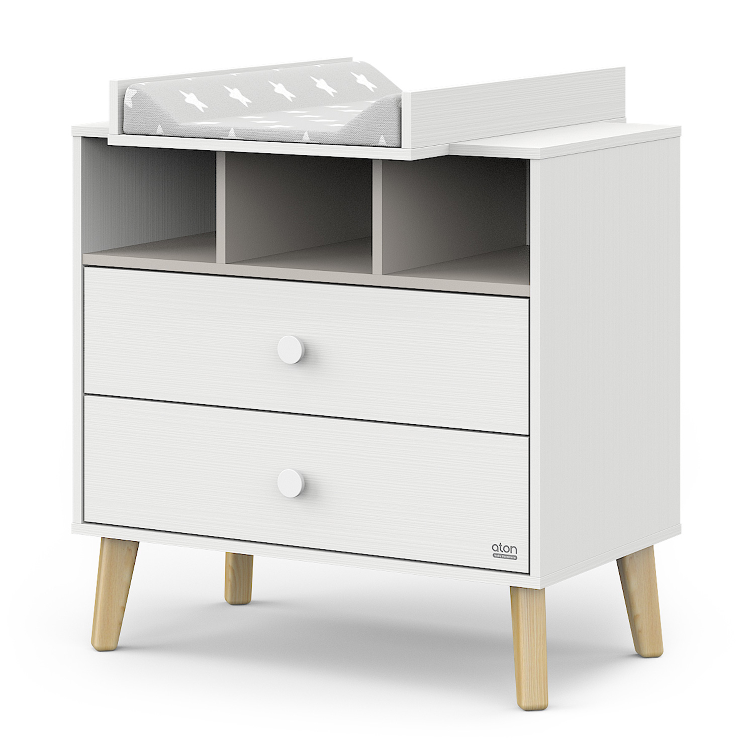 - Пеленальная поверхность комода имеет размеры 69*48 см, обеспечивая достаточное пространство для удобного ухода за малышом. Увеличенный объем ящиков, снабженных телескопическими направляющими полного выдвижения, делает использование комода еще более удобным и эффективным.