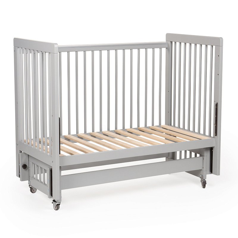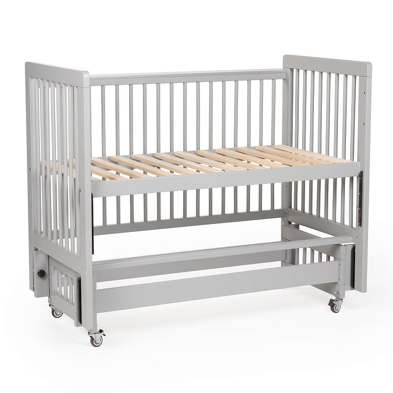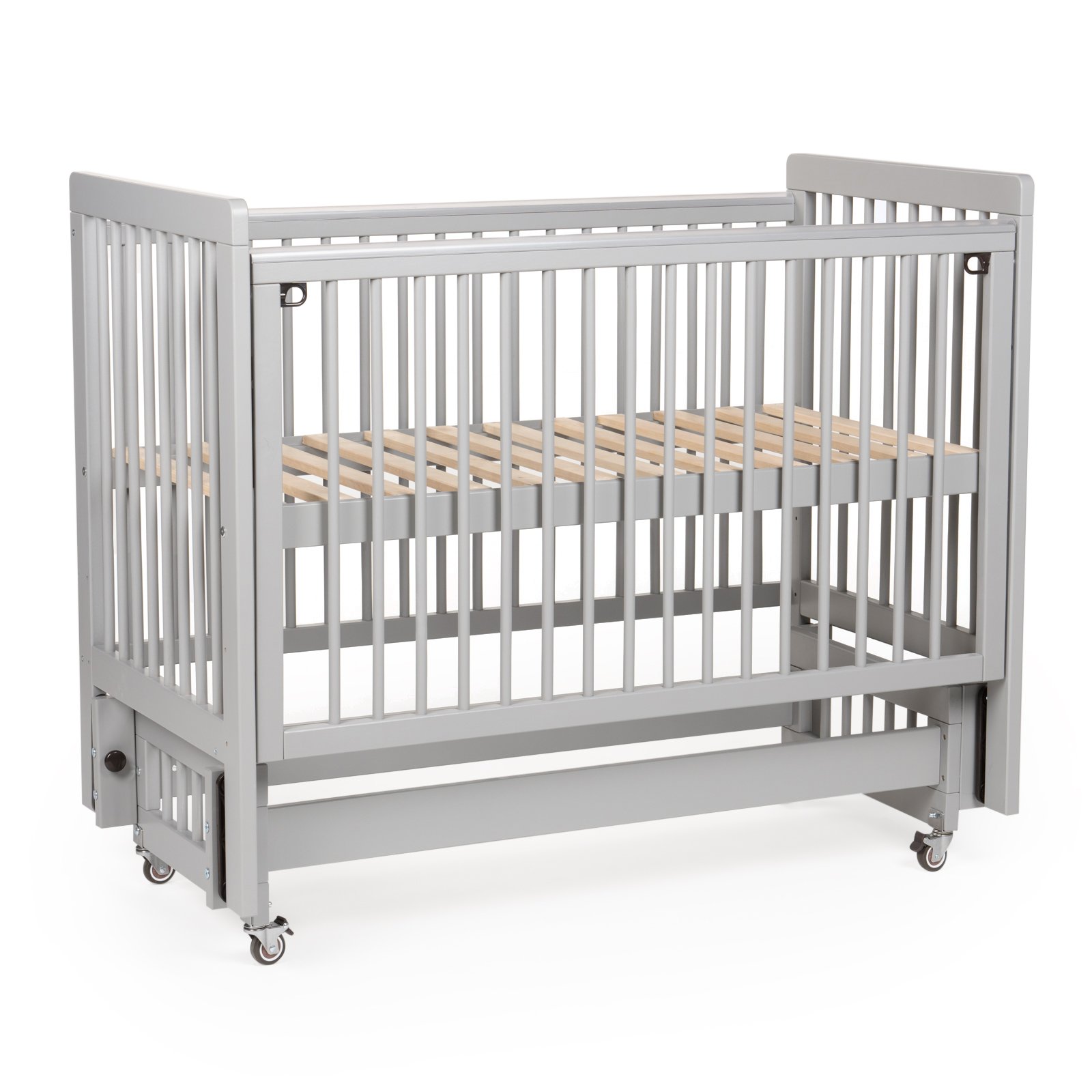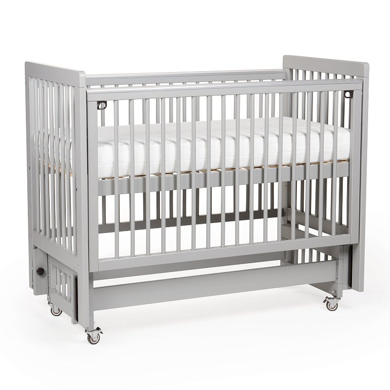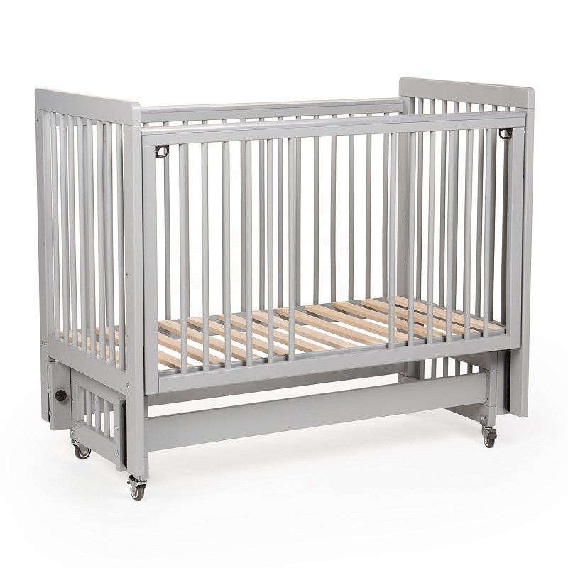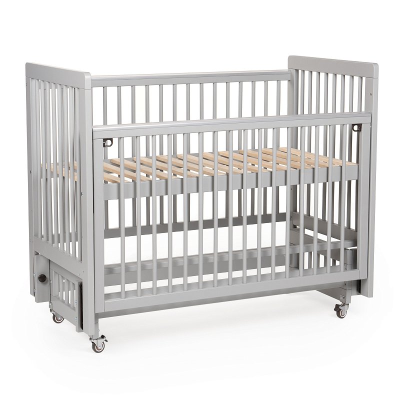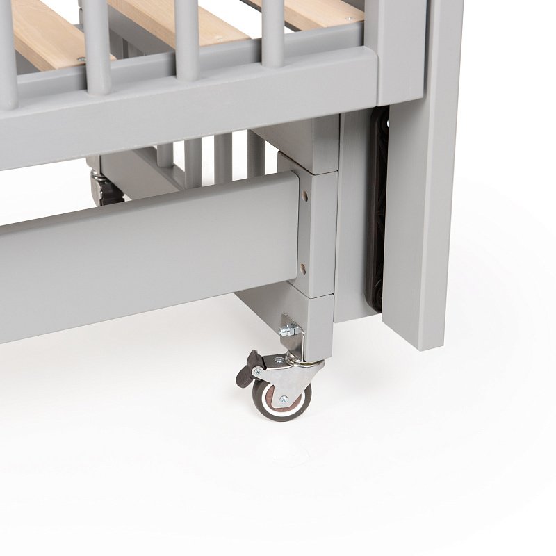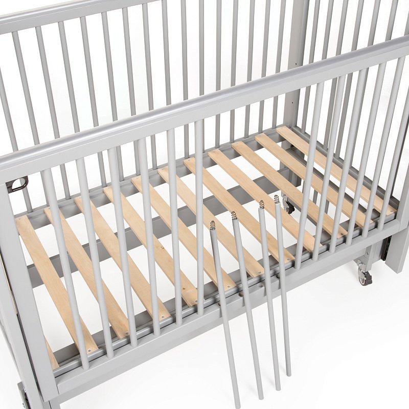Ложе кроватки имеет три положения по высоте. Регулируемую переднюю стенку (три положения) с возможностью полного снятия за считаные секунды, для удобного доступа к младенцу.