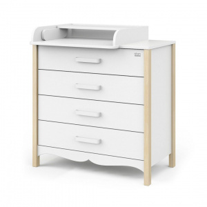 Практичный и стильный детский комод FELIX оборудован полкой, которую можно быстро и легко переоборудовать в комфортабельный столик для пеленания. Модель оснащена четырьмя вместительными ящиками на шариковых направляющих бесшумного плавного хода. Также стоит отметить особенности дизайна: красивые деревянные ножки, корпус из ЛДСП, фасады из МДФ , современные металлические ручки со скругленными углами.