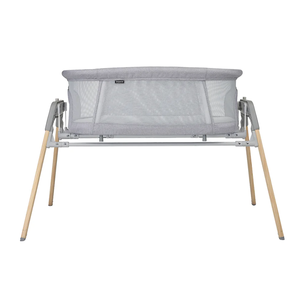 Люлька легко снимается с каркаса кроватки. Её можно переносить за две ручки в изголовье и изножье. Такая функция позволяет брать малыша с собой в любую комнату, чтобы он был рядом и видел вас. На дне колыбели расположены пластиковые ножки, поэтому её можно поставить на пол. Таким образом снятая с платформы, она выполняет роль переносной мини-кроватки.
