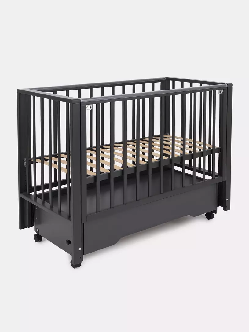 - чтобы подросший ребенок мог самостоятельно залезть в кроватку и выбраться из нее, из боковой стенки можно вынуть две рейки