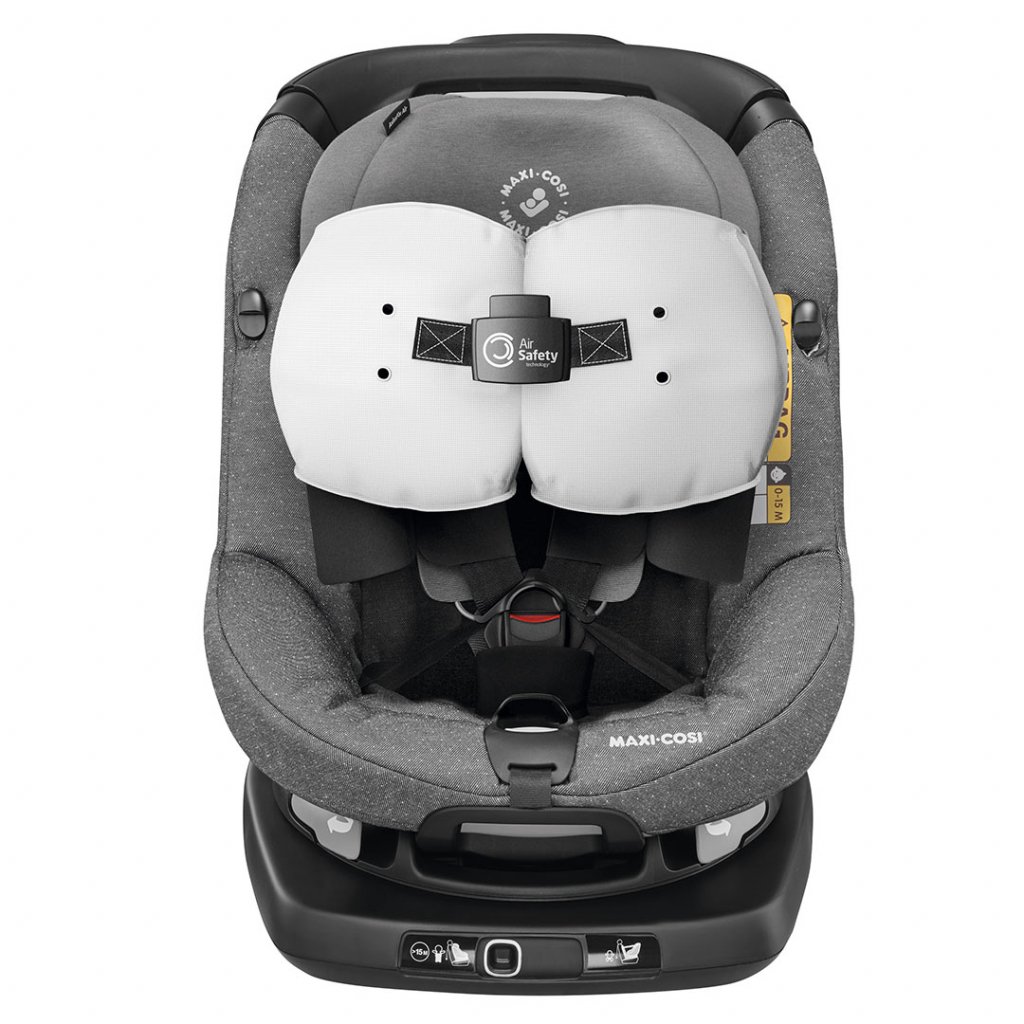В случае лобового столкновения самые уязвимые места — голова и шея. У автокресла AxissFix Air подушки безопасности активируются в считанные доли секунды, наполняются холодным воздухом и защищают голову и шею вашего ребенка от травм. Автокресло AxissFix Air оснащено двумя подушками безопасности в плечевой области. В спинку встроен блок управления и емкость с углекислым газом. Датчики, встроенные в сидение, подают сигнал о перегрузке и углекислый газ за 0,05 секунды наполняет подушки безопасности.