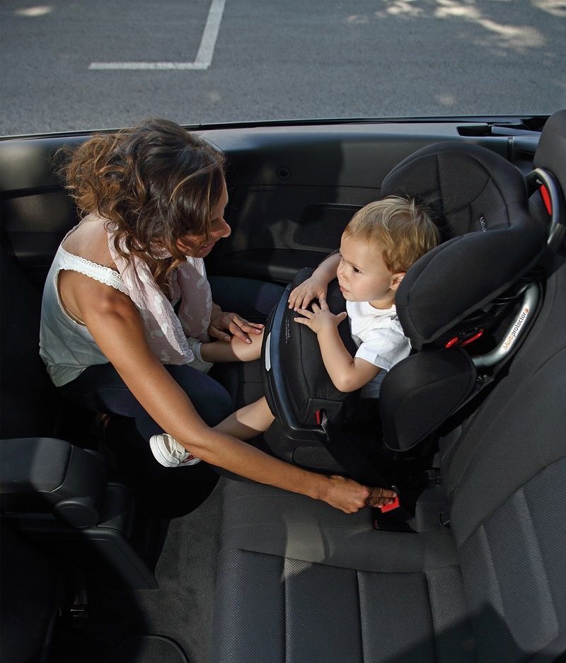 Крепление и установка. При использовании изделия в каждой из трех возможных групп, кресло устанавливается в транспортном средстве исключительно по ходу движения. В случае размещения устройства на переднем сидении необходимо удостовериться в отсутствии встроенных подушек безопасности либо произвести их отключение. Закрепляется кресло штатными ремнями либо креплениями IsoFix (в случае использования в качестве изделия 1 группы). Для установки средства в авто, не оборудованного крепежными элементами системы изофикс, имеется выдвижной разъем.