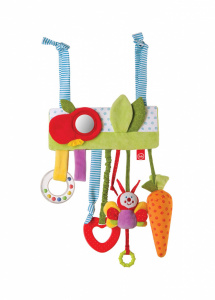 Игрушка-подвеска JOLLY GARDEN – замечательный тренажёр для развития всех видов восприятия ребёнка (слухового, зрительного и тактильного). Подвеска сочетает в себе разные виды игрушек, интерес к которым малыш сохранит на протяжении всего младенческого возраста. Крепление-липучка позволяет надёжно фиксировать игрушку на кроватке.