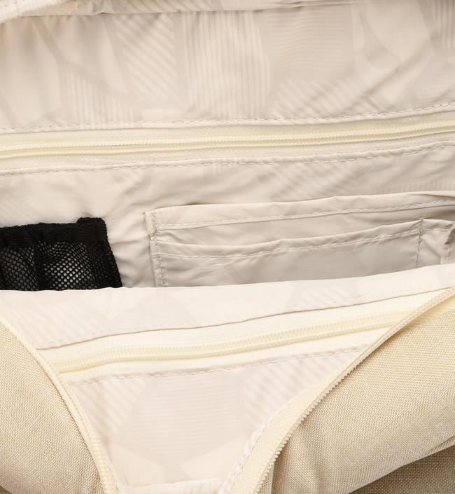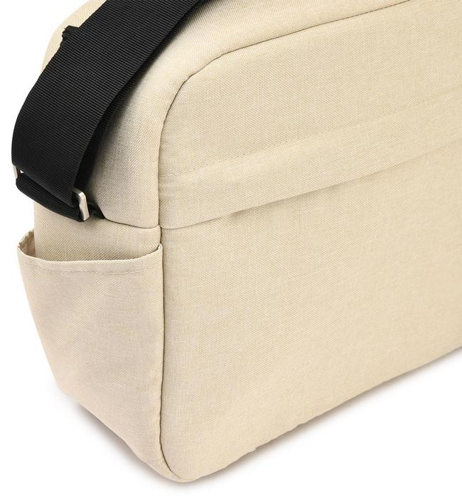 Однотонная расцветка сумки полностью совпадает с цветом обивки коляски, составляя с ней единый ансамбль.