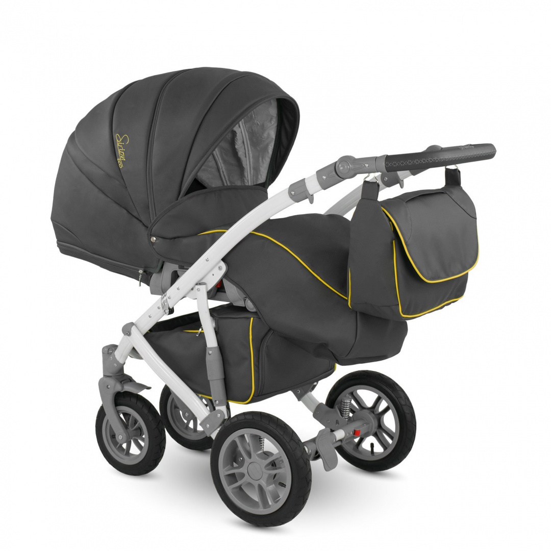 Универсальная детская прогулочная коляска Camarelo Sirion Eco – усовершенствованная модель с неповторимым дизайном, в котором сочетаются перфорированная эко-кожа с оригинальным рисунком и ткань дорогой текстуры. Эта модель может похвастаться легкостью алюминиевого шасси и маневренностью при великолепной амортизации и больших надувных колесах.