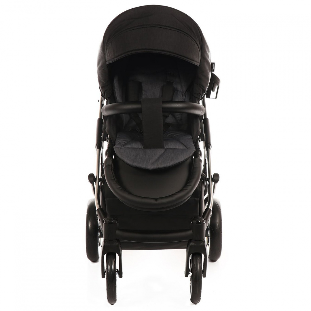 Рама коляски легко управляема благодаря продуманной конструкции, эргономичной ручке и полноповоротным колесам спереди. Закрытые амортизаторы нового поколения обеспечивают плавный ход и мягкое укачивание карапуза.