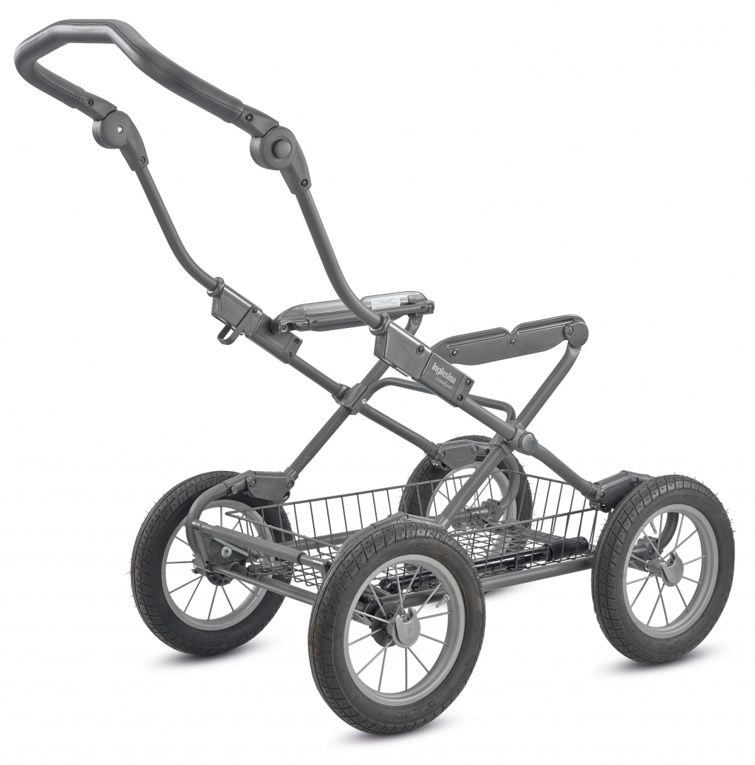 Полностью амортизированное шасси ERGO BIKE с цельной ручкой и большими надувными колесами дает возможность использовать данную модель на местности с любым рельефом. Регулируемая по высоте ручка шасси — с отделкой из искусственной кожи.