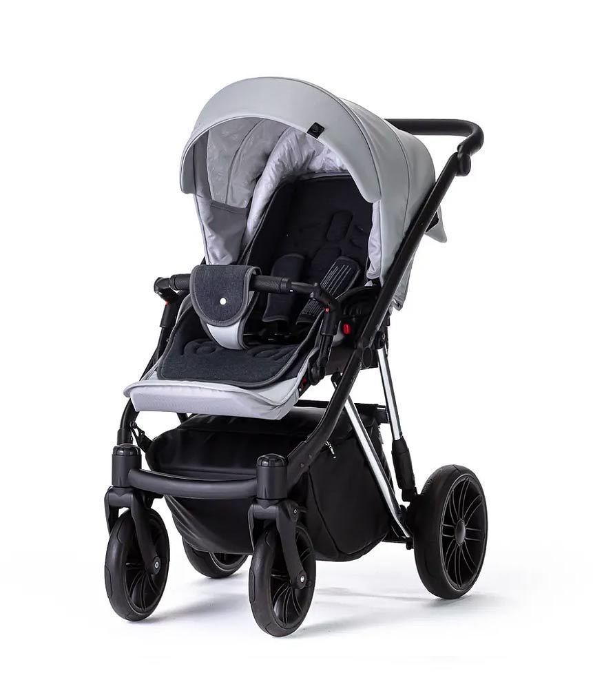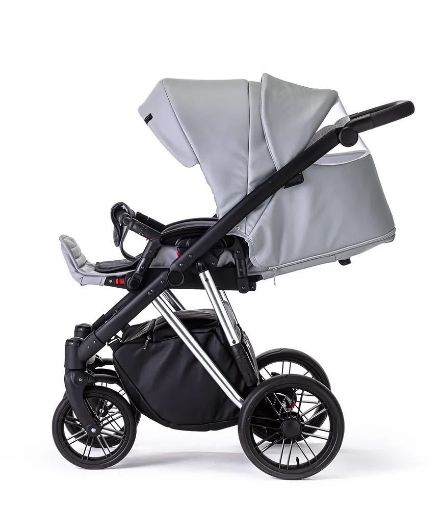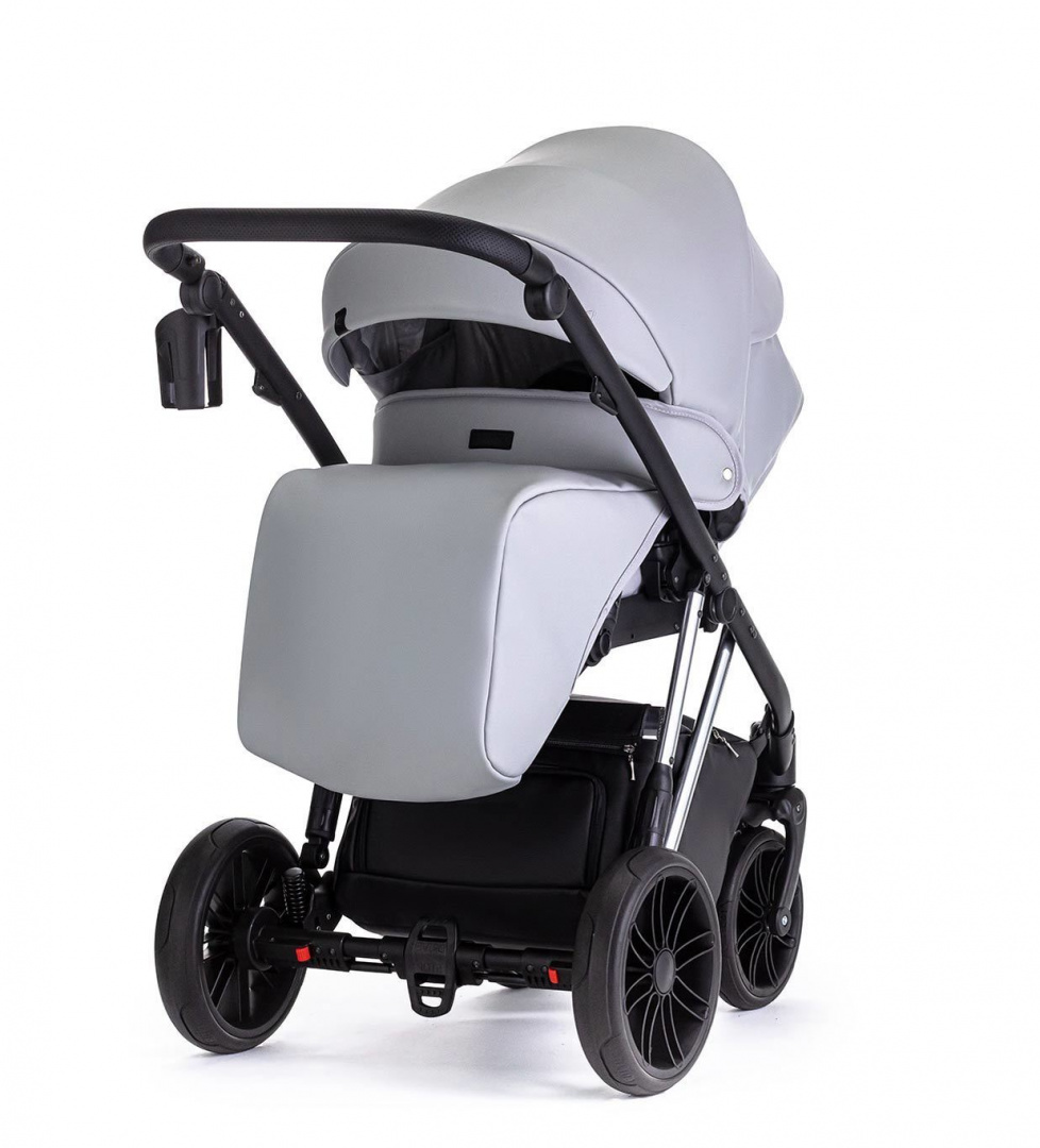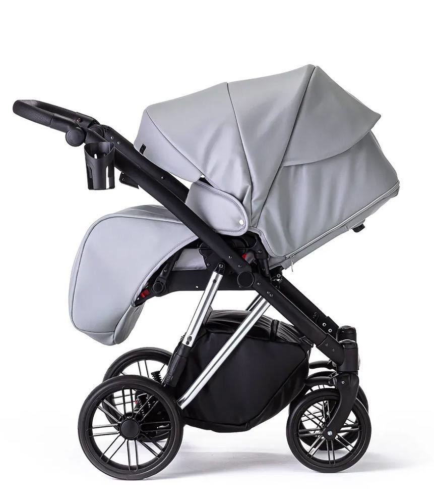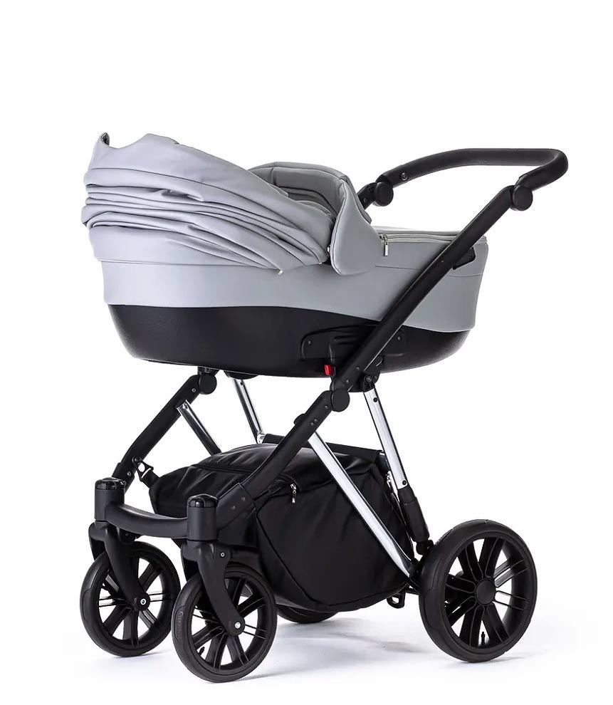 - Большая пластиковая люлька обтянутая перфорированной эко кожей (низ люльки) и высококачественной тканью на капюшоне с декоративными элементами из эко кожи.