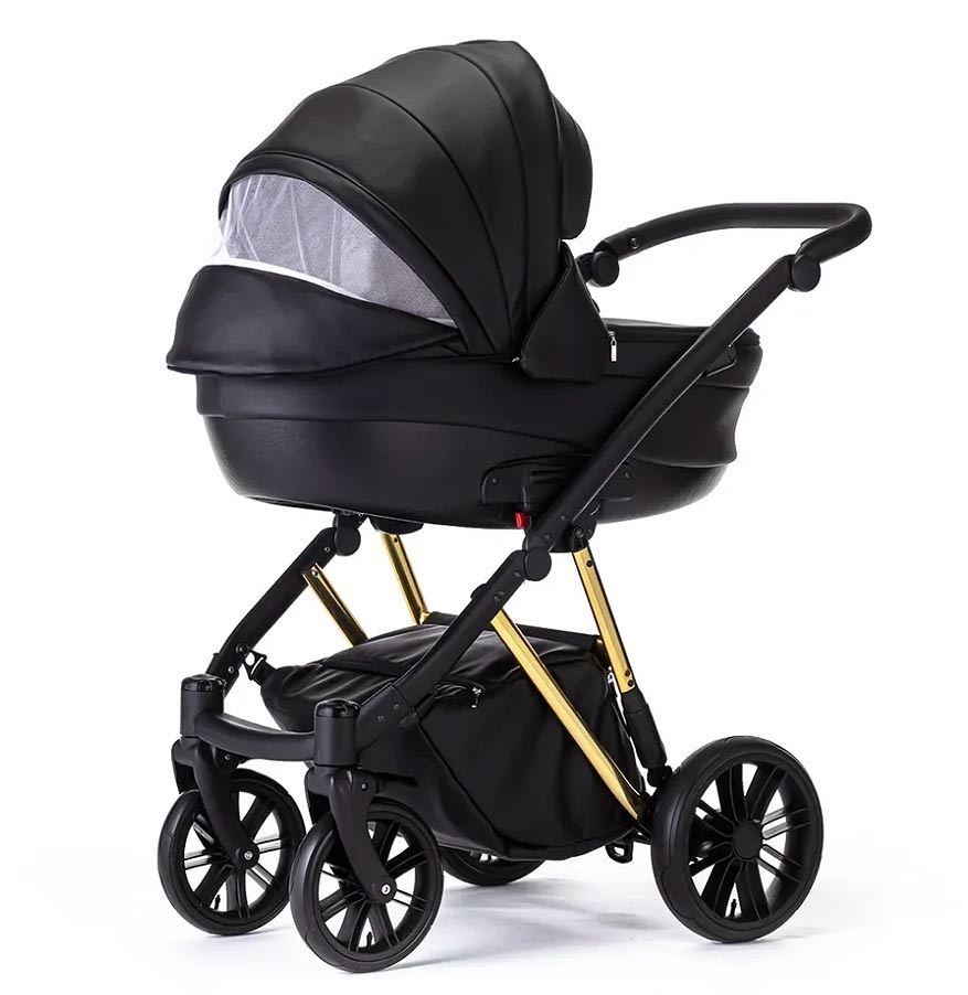 - Большая пластиковая люлька обтянутая перфорированной эко кожей (низ люльки) и высококачественной тканью на капюшоне с декоративными элементами из эко кожи.