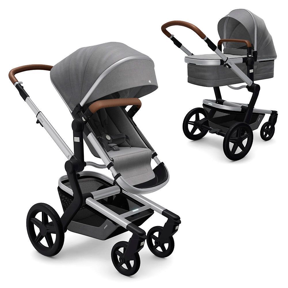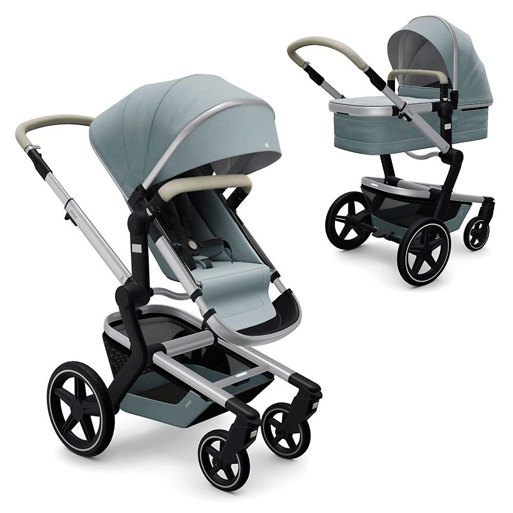 Алюминиевое шасси Joolz Day+ усилено стальными элементами в тех местах, которые чаще всего подвергаются нагрузке. Рама коляски легко складывается как с прогулочным блоком, так и без него. Квартет передних и задних колес с амортизацией, выполненных из вспененной резины, дарит коляске превосходные ходовые качества. Передние колеса – поворотные, они обеспечивают улучшенную маневренность. Блокировка колес в прямом положении потребуется, чтобы проехать по сложным участкам дорог, например, по снежной каше или песку. Фиксация осуществляется простым нажатием носком на соответствующие кнопки. Тормоз привычно расположен между задних колес, не испортит дорогие туфли мамы.