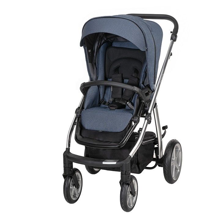 - Рама коляски изготовлена из алюминия и весит около 9 кг вместе с колесами. Складывается легко и автоматически. После складывания его можно хранить в горизонтальном или вертикальном положении. Коляску можно сложить вместе с прогулочным сиденьем,
