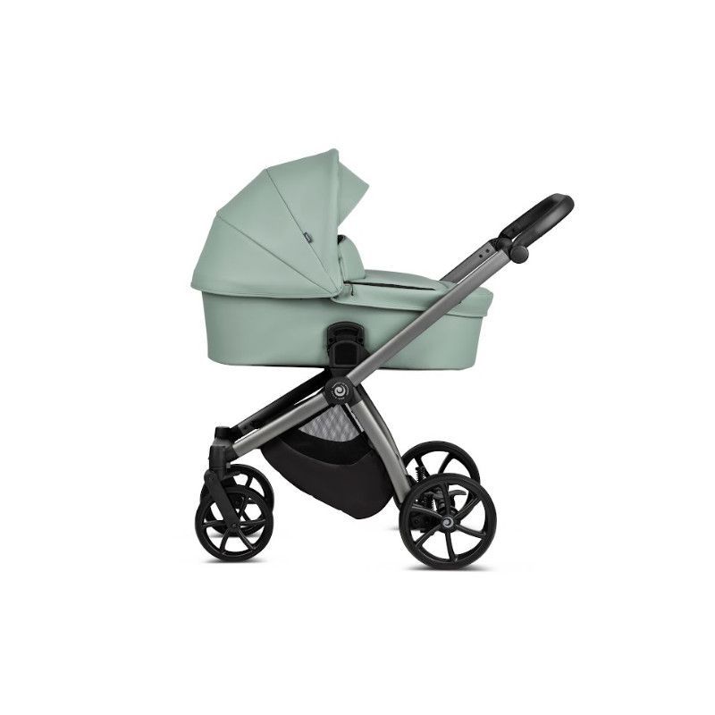 У коляски Tutis Mio Eco-Leather самая лёгкая люлька, она весит всего 2,6 кг. Это позволяет её брать с собой, переносить, поднимать. При этом спальное место полноразмерное и невероятно комфортное. Высокие, крепкие борта с тройной антибактериальной подкладкой, закрывают ребёнка, создавая уютную атмосферу внутри. Мягкий матрасик и специальная сетчатая вставка внизу люльки позволяют ребёнку наблюдать за окружающим миром. Также есть небольшой сюрприз для развития малыша – специальные чёрно-белые рисунки на внутренней стороне капора.