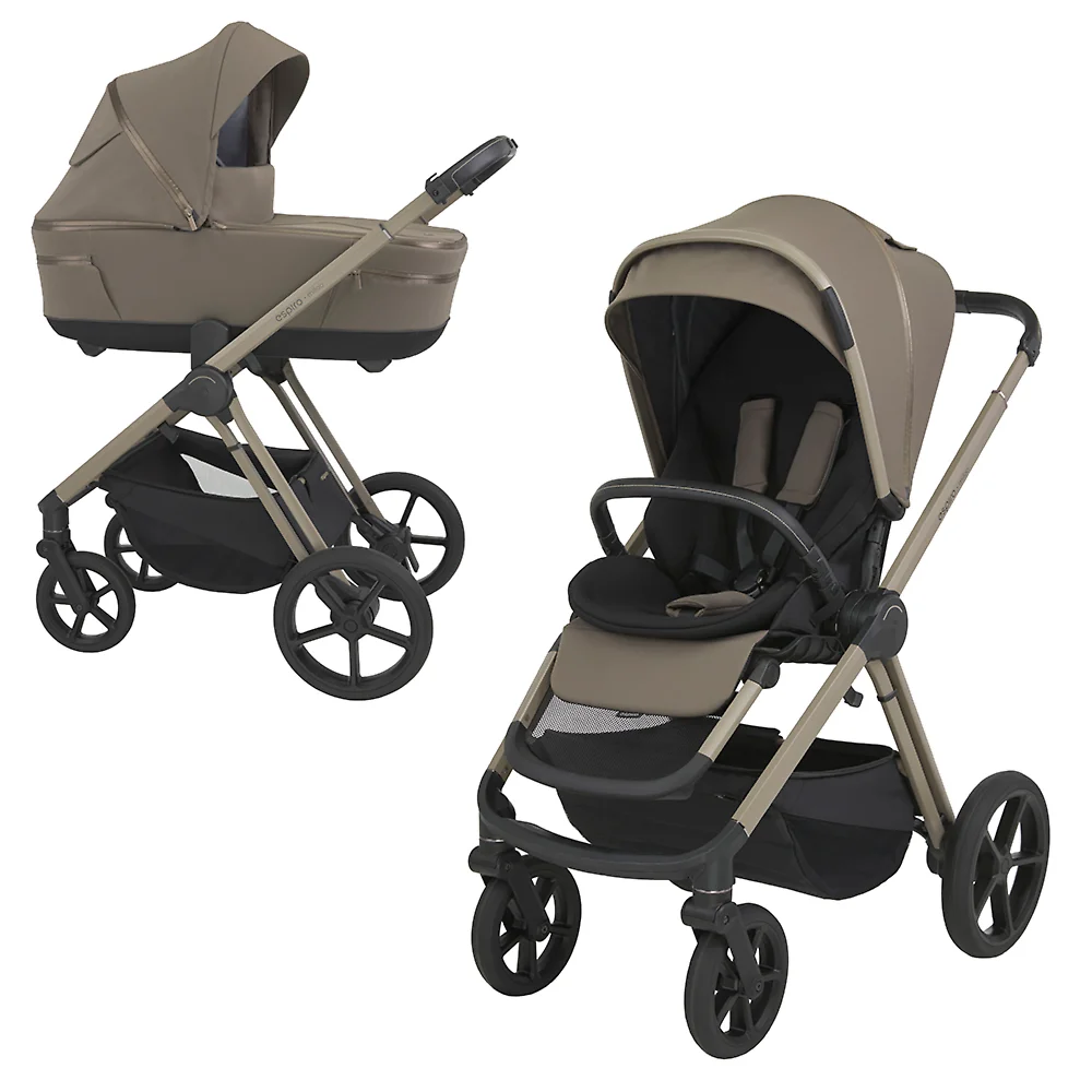 Мягкая амортизация на каждом колесе охраняет покой малыша. Она отлично гасит вибрацию от дороги, делая поездку плавной и спокойной. Большая вместительная корзина перевезет все ваши вещи! Она имеет отличный доступ со всех сторон и даже, когда ребенок спит и спинка сиденья опущена в горизонтальное положение. Тормоз расположен у правого колеса и выполнен в виде педали. Нажмите на ее нижнюю часть – колеса заблокируются. Нажмите на верхнюю – коляска может ехать. Вы сможете с легкостью сложить Espiro Miloo одной рукой вместе с прогулочным блоком. Благодаря продуманной конструкции в сложенном виде она не занимает много места. Шасси можно хранить в небольшой прихожей и без проблем положить в багажник автомобиля.
