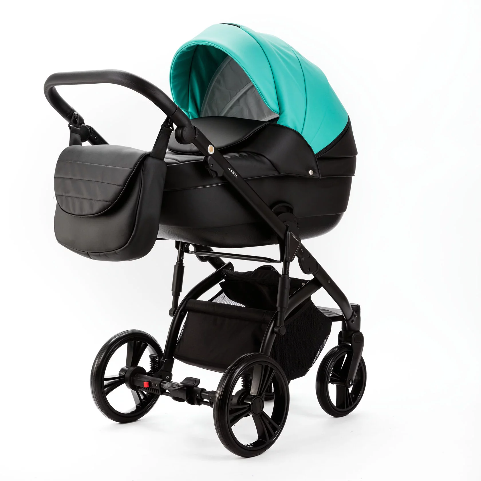 Ручка регулируется под рост родителей в 8 положениях. Сумка для детских вещей открытого типа, крепится на молниях к раме. На раме расположены амортизаторы, для плавного хода коляски, регулируются в 2 положениях - мягко и жестко.