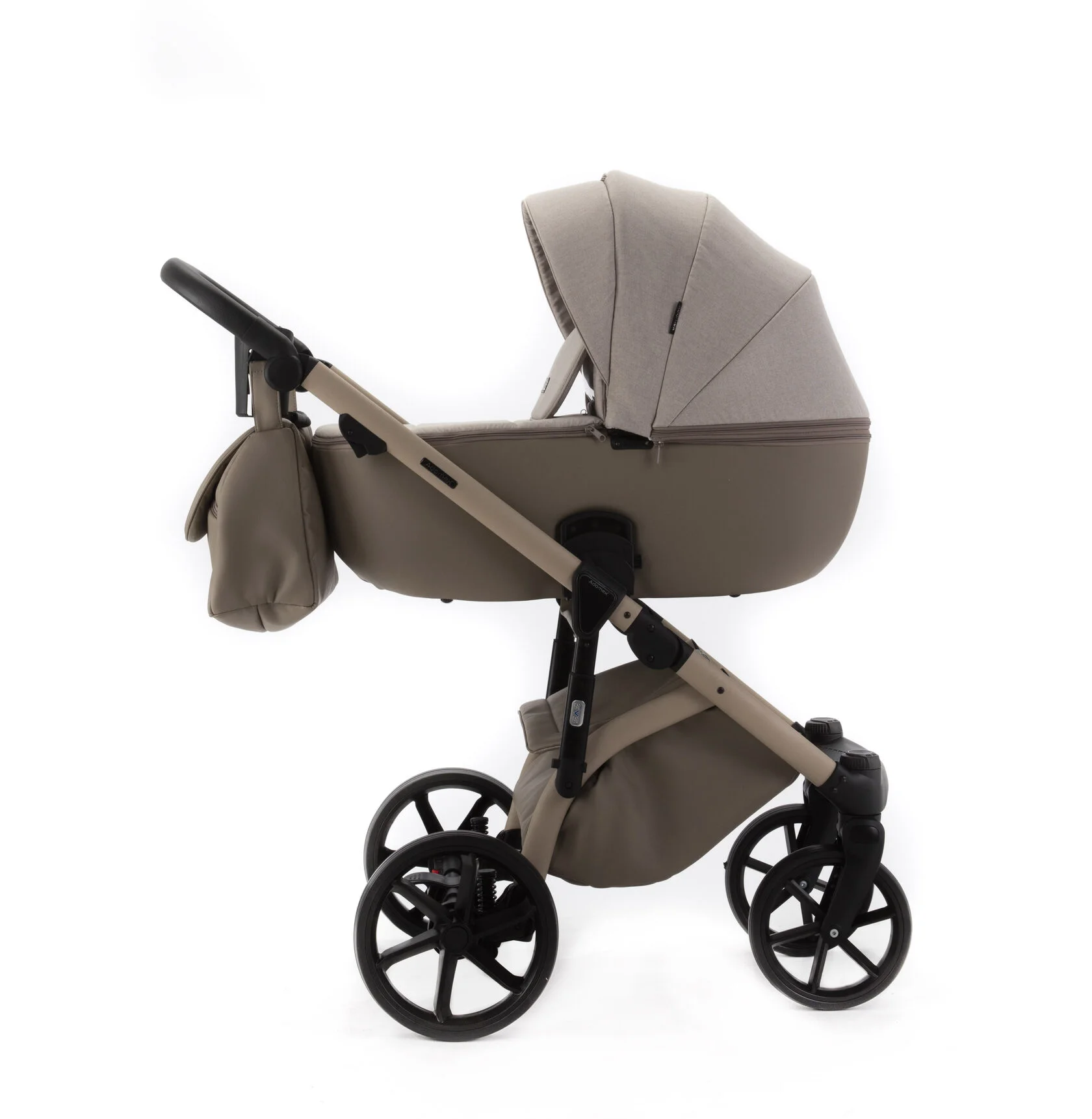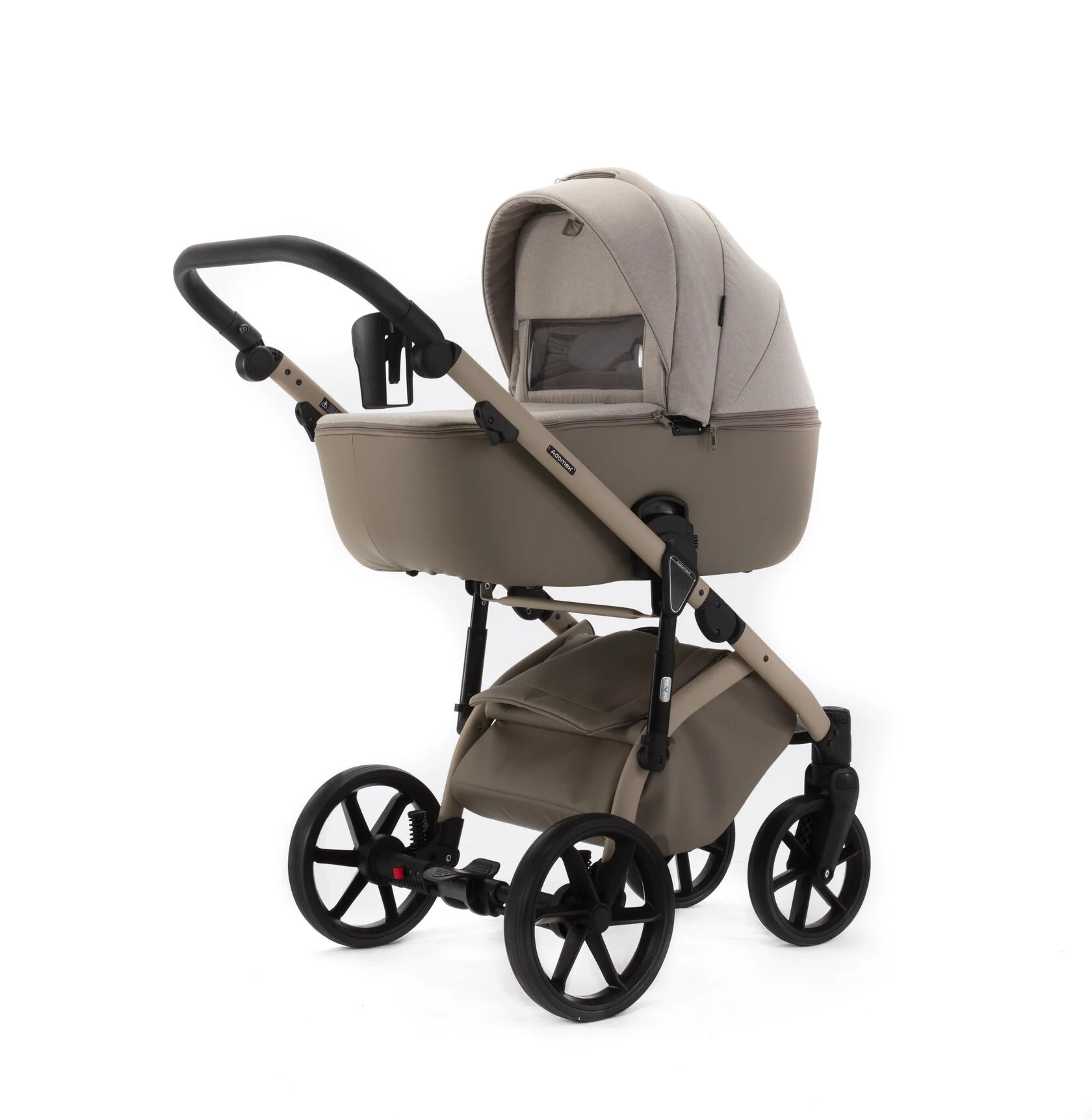 Прогулочный блок в коляске Adamex Nola просторный и комфортный. Вы непременно оцените защищенность ребенка в нем.Высокая проходимость и мягкая амортизация – шасси Adamex Nola