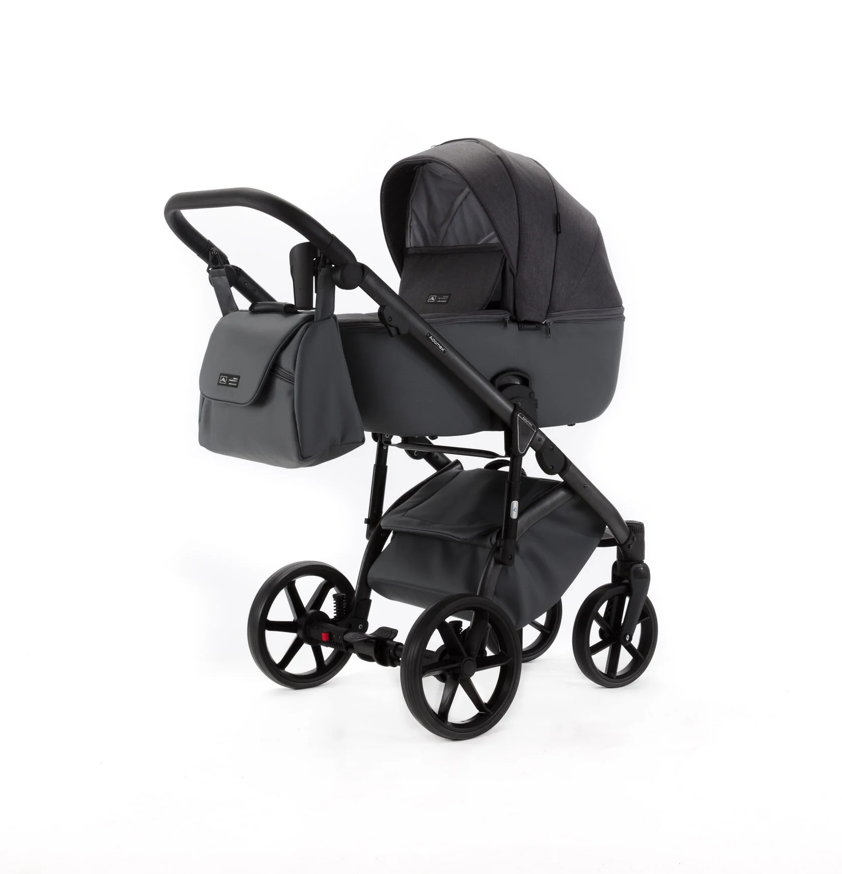 Прогулочный блок в коляске Adamex Nola просторный и комфортный. Вы непременно оцените защищенность ребенка в нем.Высокая проходимость и мягкая амортизация – шасси Adamex Nola