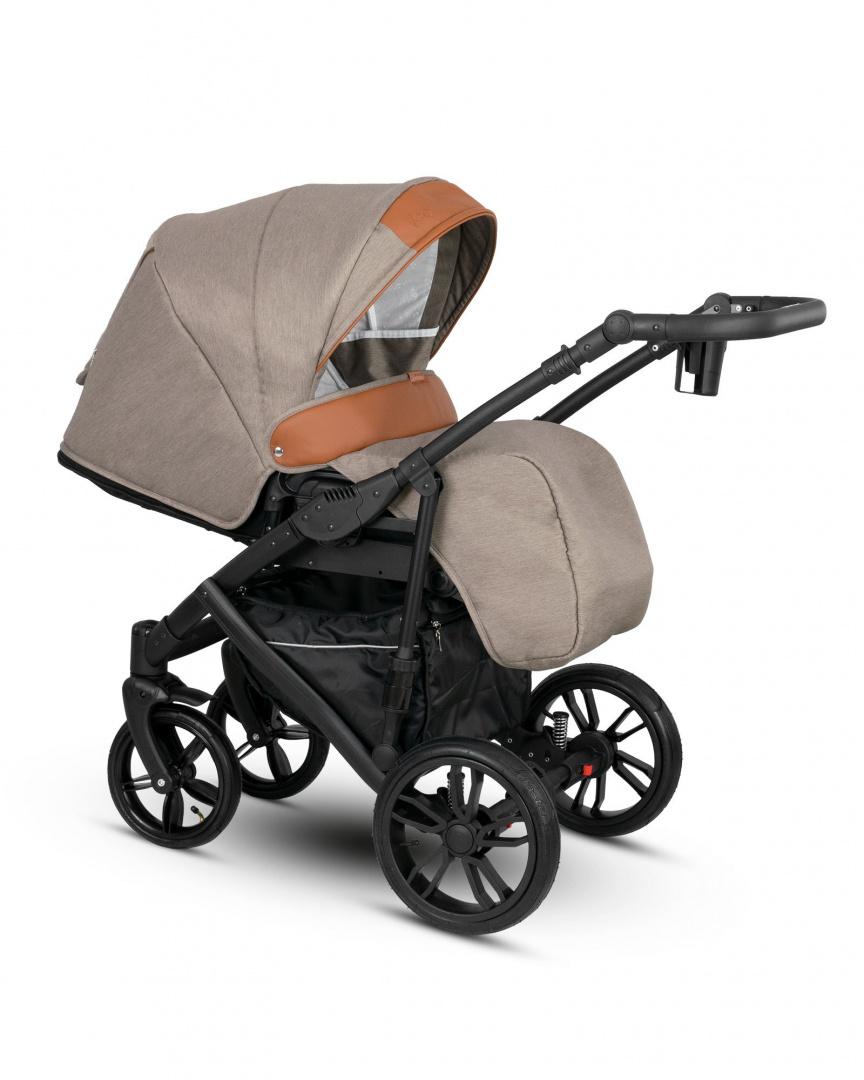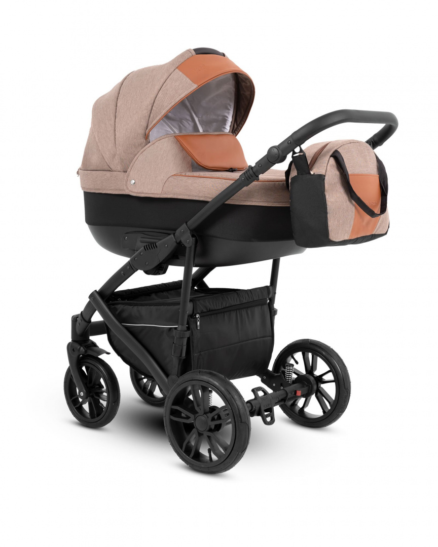 Пластиковый короб, в сочетании с обшивкой из современной ткани «меланж» с водоотталкивающей пропиткой и вставками из эко кожи, выглядит элегантно. Люлька имеет встроенную, многоступенчатую регулировку подголовника и вентиляцию. Бесшумный механизм регулировки капора с большим козырьком защищает ребёнка от солнца и ветра во время прогулки. Капор люльки оснащён открывающимся вентиляционным окошком со встроенной москитной сеткой, обеспечивающим дополнительную вентиляцию в жаркие дни. Люлька оснащена специальной ручкой для переноски, обшитой эко кожей. Вся внутренняя текстильная часть люльки выполнена из 100% хлопка.