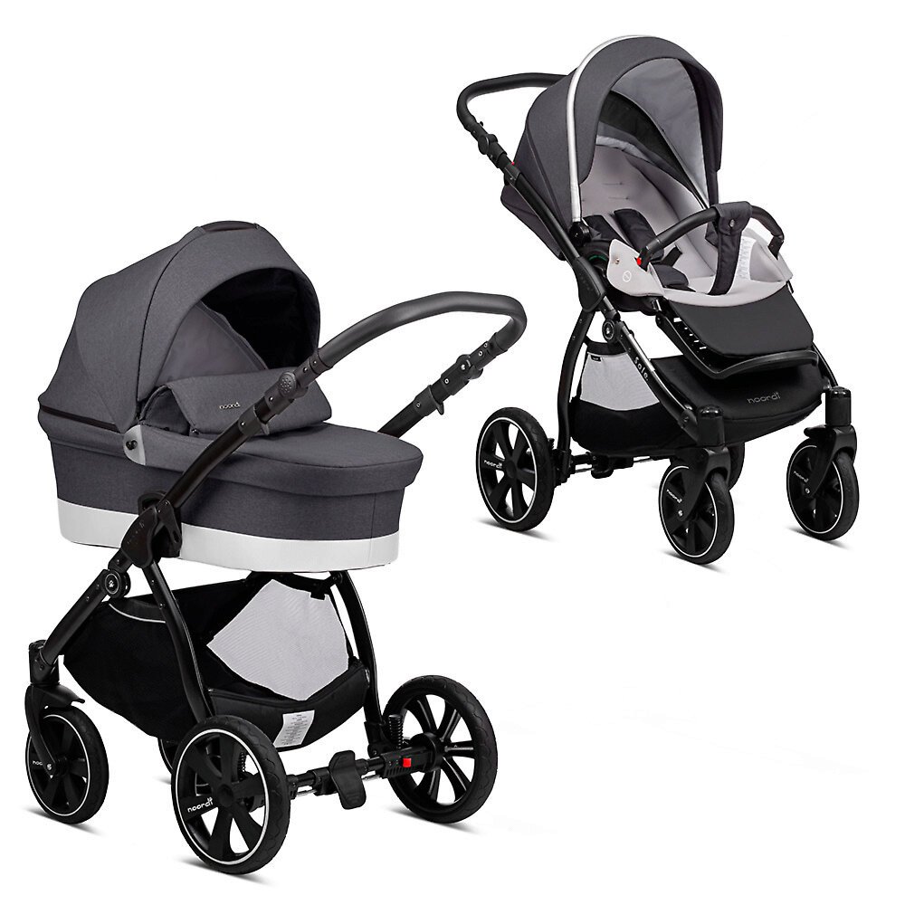 Детская коляска NOORDI Sole Go 2021(нурди соле гоу 2021) 2 в 1 : Идеально подходит для использования в России, с учетом наших погодных и дорожных условий. Вездеходную модель можно эксплуатировать с рождения ребенка до 3 лет. Новинка 2020 года имеет очень просторную люльку и реверсивный прогулочный блок, регулируемую пружинную амортизацию колес и хорошее управление. Всесезонная коляска Noordi Sole Go относится к среднему ценовому диапазону, а расширенная комплектация позволит избежать дополнительных трат. Спальный блок в коляске Noordi Sole Go подойдет даже для крупных малышей в теплой одежде, благодаря хорошему внутреннему объему. Ровное дно выполнено из легкого сотового поликарбоната, есть мягкий «дышащий» матрасик с несъемным чехлом. Высокие борта спального блока покрыты изнутри текстильной обивкой, которую можно снять для стирки. Для компактного хранения люлька складывается в плоскую конструкцию. Солнцезащитный капюшон с влагоотталкивающей пропиткой бесшумно регулируется нажатием одной кнопки. Капюшон оснащен козырьком и скрытой сетчатой секцией. В комплекте с коляской Noordi Sole Go вы получите дождевик и антимоскитную сетку, которые также подходят для прогулочного сиденья. Утепленная накидка на ножки крепится к бортам люльки с помощью пластиковых петель. В отвороте находится прозрачное силиконовое окошко, которое пригодится для зрительного контакта с крохой, когда вы максимально поднимите отворот, чтобы спрятать ребенка от непогоды. Сиденье, так же как и люлька, рассчитано на детей любой комплекции в любое время года. Высокая спинка и широкое посадочное место не стеснят малыша в движениях, а летом дополнительное пространство обеспечит приток свежего воздуха. Мягкое сиденье раскладывается в положение для отдыха и сна с помощью рычага в задней части спинки. Классическое опускание подразумевает независимую друг от друга регулировку спинки и подножки. В результате малыш будет лежать на ровном спальном месте. Нижняя часть подножки выполнена из прорезиненного материала, а платформа для подросших детей – из пластика. Глубокий капюшон с козырьком превосходно защищает ребенка от солнца и непогоды. В скрытой секции находится сетчатая вставка для лучшей вентиляции в жару. В комплект с Noordi Sole Go входит тёплая накидка на ножки для прогулочного сиденья, отворот которой можно еще приподнять. Съемный бампер, покрытый эко-кожей, открывается для удобного усаживания ребенка в коляску. Бампер регулируется по высоте. Предусмотрена текстильная паховая перемычка, фиксирующаяся вокруг бампера. Пятиточечные ремни безопасности с мягкими плечевыми накладками устанавливаются по высоте в зависимости от роста ребенка. Рама коляски имеет оптимальный вес для модульных колясок 2 в 1. Она легко складывается для хранения или транспортировки. Боковой фиксатор защитит от случайного раскладывания шасси. Резиновые колеса очень удобны в эксплуатации: они мягкие, не сдуваются, не боятся проколов и перепадов температур. Передние колеса имеют два режима: вращающийся и прямое положение. Переключение режимов осуществляется шайбой над каждым колесом. Коляска Noordi Sole Go оснащена амортизацией пружинного типа с возможностью ее регулировки по мере взросления ребенка. Ножной тормоз выполнен в виде педали, не пачкает и не царапает обувь родителей. Ручка для управления коляско