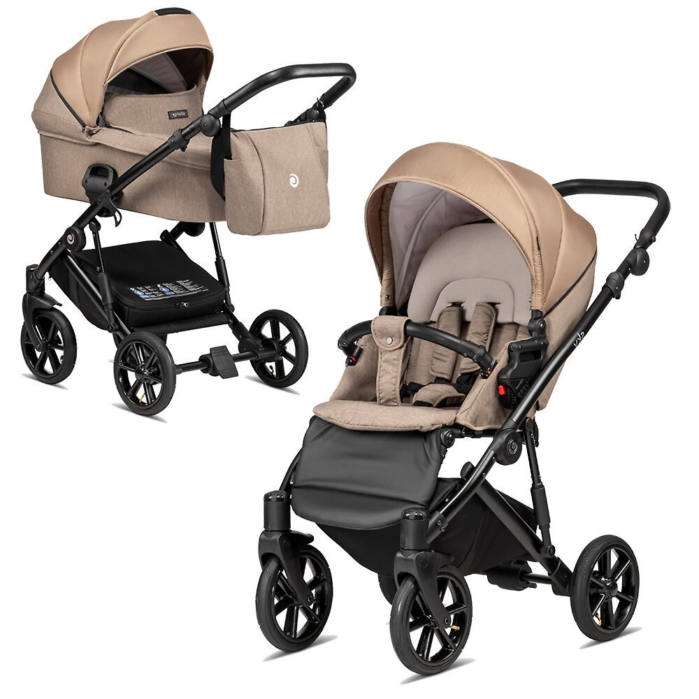 Детская коляска TUTIS Sky (Тутис Скай) 2 в 1: Большая и уютная люлька Tutis идеально подойдёт для любой погоды. Спальный блок всегда сохраняет внутри комфортный для новорожденного микроклимат. Он не промерзает в минусовую температуру, держит тепло внутри. Летом же отталкивает жар от асфальта и не нагревается. Большой капюшон в дуэте с теплой накидкой на ножки защитят от дождя и снега. Капор легко отрегулировать вверх и вниз, нажав на кнопку сбоку. Дополнительная вентиляционная секция в капюшоне открывается молнией. Накидка крепится к люльке кнопками. Чтобы быстро достать малыша, достаточно расстегнуть на ней две молнии справа и слева. Вся внутренняя отделка коляски имеет особые «пупырышки», трогая которые малыш получает новые эмоции, знакомится с миром и лучше развивается. Все ткани натуральные и безопасные, их легко снять для стирки. Люлька коляски Tutis Sky очень лёгкая, её можно переносить держа за ручку на капюшоне. Снимите колыбель с шасси и поставьте на ровную поверхность. Благодаря особой форме дна вы можете укачивать ребенка из стороны в сторону. Это позволяет успокоить новорожденного, если он вдруг начал просыпаться. Лёгкая люлька с возможностью укачивания удобна для похода в поликлинику или в гости. И, конечно, особенно ценна, когда малыш уснул во время прогулки. Оставьте шасси за дверью, занесите колыбель в квартиру, не тревожа сон малыша. Спальный блок легко сложить буквально за несколько секунд. Вы сможете перевозить коляску даже в небольшом багажнике. Плюс, такую люльку легко хранить, когда ребенок подрастёт и пересядет в прогулочный блок. Прогулочный блок детской коляски Tutis Sky можно установить как по ходу движения, так и лицом к маме. Обычно до года малыша катают спиной вперед. Так родителям легче контролировать кроху: поправить шапку, дать молоко или соску. После года, как правило, ребенку интереснее смотреть по сторонам и изучать мир. Спальное место здесь очень большое и удобное для детей любого роста и комплекции. Глубокое и широкое сиденье обеспечивает максимально комфортную посадку. А благодаря регулируемой спинке, легко найти самое оптимальное положение. Регулировка осуществляется с помощью рычага. Спинку можно опустить и в полный горизонт, превратив коляску в кроватку на колесах. Внутри есть мягкая подушка, на которой очень приятно спать. Капюшон большой, открывается до самого бампера и хорошо защищает маленького пассажира от непогоды. Он утеплён изнутри, не боится сильного ветра и снега. Дополнительная вентиляционная секция открывается молнией. Чтобы установить капюшон в нужное положение, необходимо нажать на кнопку. За безопасность ребёнка в коляске отвечают пятиточечные ремни, бампер и перемычка между ножек. Бампер легко отстегнуть с каждой стороны, он не мешает посадке и высадке пассажира. Подножка механически регулируется. Просто потяните её наверх и она займет горизонтальное положение. Покрыта защитным материалом и легко чистится от грязи. В холодное время года можно использовать накидку на ножки. Она есть в комплекте. Крепится к прогулочному блоку с помощью кнопок и хорошо защищает малыша от ветра, снега и дождя. Ручка покрыта мягким и приятным материалом, она не замерзает в минусовую температуру. За неё очень приятно держаться – на ручке нет никаких кнопок или перемычек. Вы легко сможете отрегулиров