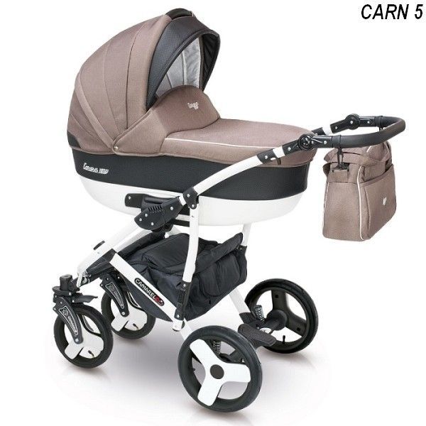 Универсальная коляска Camarelo Carera NEW 2 в 1 (Камарелло Кареро) – качественная и усовершенствованная модель от польского производителя. Это первый джип-внедорожник для Вашего ребенка благодаря которому Вы легко сможете преодолевать любые препятствия на любых дорогах, не разбудив при этом спящего в люльке малыша. Оригинальный дизайн, выполненный в спортивном стиле, строгие линии шасси, смягченные округлыми формами комфортной просторной люльки отличают коляску Camarelo Carera NEW. Все цветовые версии люльки имеют белый низ, в сочетании с черной, перфорированной кожей ПВХ и верхом из высококачественного материала, имитирующего лен, в шести цветах.