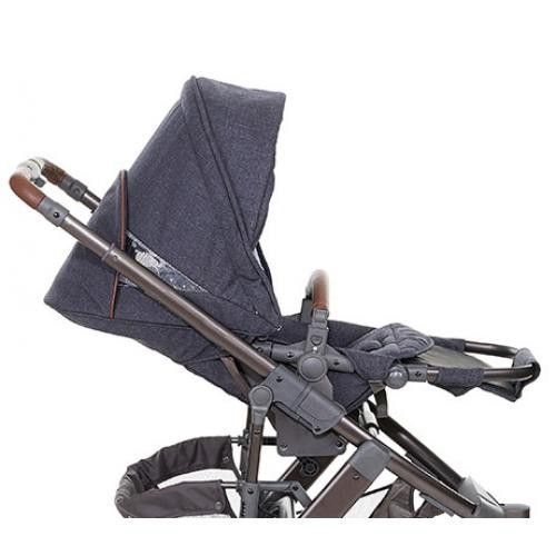Далее — прогулочный блок. Для безопасности ребенка здесь есть защитный бампер и пятиточечные ремни. Регулируемый капюшон защитит от солнца оборудован дополнительным козырьком, а смотровое окошко позволит наблюдать за малышом во время поездки. Сидение-гамак регулируется в 3-х положениях до горизонтального: ребенок можно сидеть, чуть отклониться полусидя или поспать. Регулируемая подножка позволит увеличить Вам спальное место, она покрыта материалом "под кожу", легка в уходе.