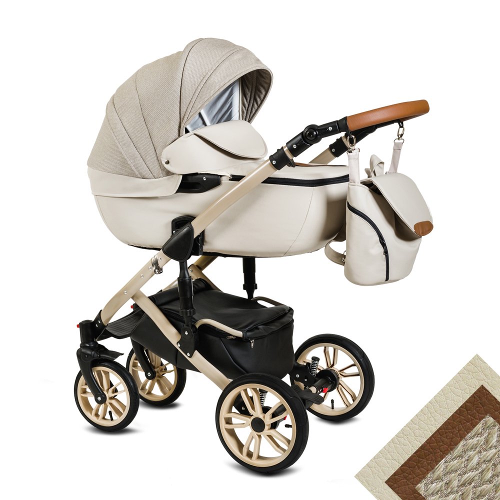 Коляска ALIS Camaro (АЛИС Камаро) 2 в 1: Дизайнерская коляска, созданная покорить вас своим элегантным видом и благородными расцветками. Стильный транспорт выполнен из качественной эко кожи, а для комфорта ребенка капюшон люльки и прогулочный блок выполнены из дышащей ткани. Такое сочетание материалов обеспечит вам легкий уход за коляской, а малышу комфорт в любое время года. У коляски большие надувные колеса. Они обеспечат очень легкий ход транспорта по любым дорогам и прекрасно будут ехать даже при низких температурах. Двойная амортизация поглощает любые вибрации от дороги. С коляской в комплекте идут все необходимые аксессуары, как дождевик и москитная сетка, а сумка для мамы выполнена в виде стильного рюкзака.