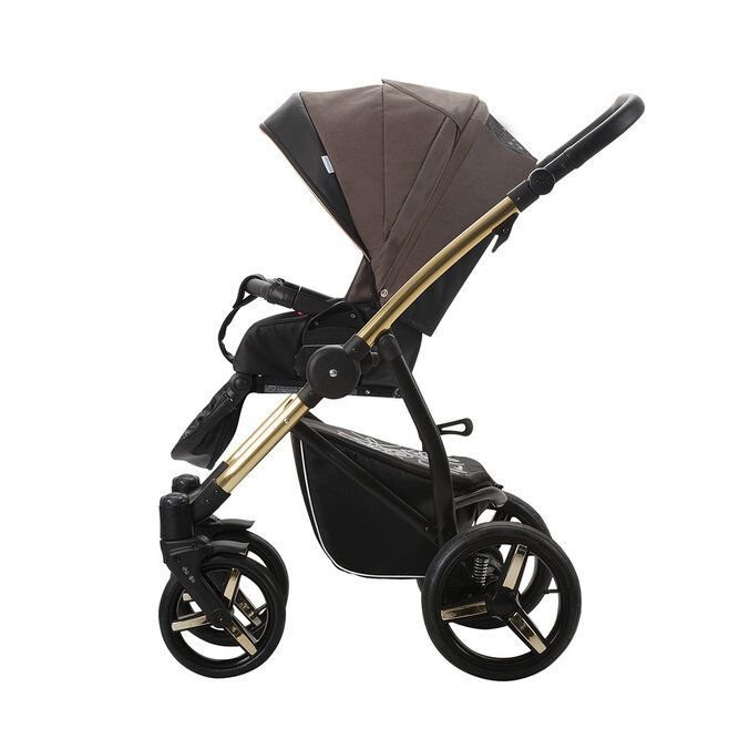 Спортивное шасси с надувными колесами у коляски оборудовано системами DMS – память движения и SAS —система антишок. Теперь ваши быстрые прогулки будут еще и более безопасными для малютки. Передние колеса поворотные с блокировкой, задние оборудованы ножным тормозом в виде педали посередине оси. Глубокий багажник сохранит вещи от пыли и падения. Держатель рамы фиксирует коляску в сложенном виде при перевозке в багажнике авто. Ручка регулируется для родителей разного роста простым нажатием клавиш по бокам.