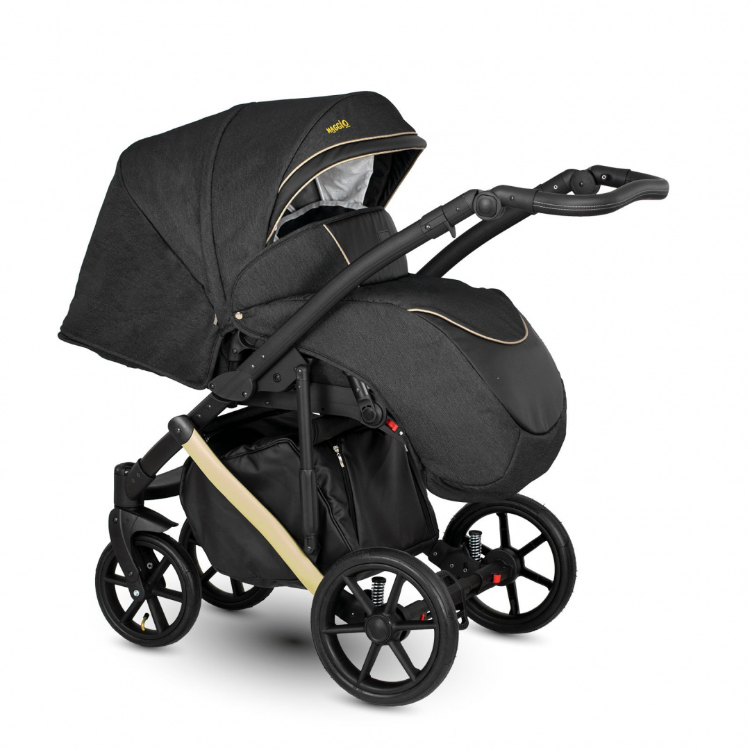 -Коляска Camarelo Maggio имеет функцию сложения рамы вместе с колёсами, которые при желании можно снять. Рама складывается «книжкой» одним движением.
