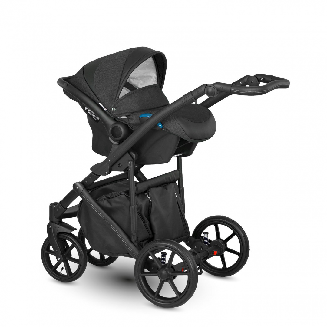 -Конструкция рамы изготовлена из прочного алюминиевого профиля с дополнительной амортизацией,. Благодаря системе анти-шок и усиленной подвеске с возможностью регулировки жесткости хода, обеспечивается мягкость и плавность движения. Коляска укомплектована надувными колёсами на подшипниках. -Надёжная тормозная система EASY STOP приводится в действие одним лёгким нажатием педали. Благодаря поворотным передним колёсам обеспечивается идеальная маневренность. Для движения по прямой предусмотрена фиксация передних колес.