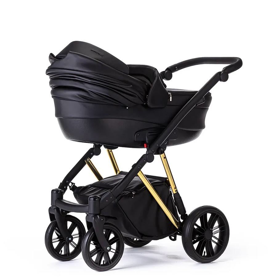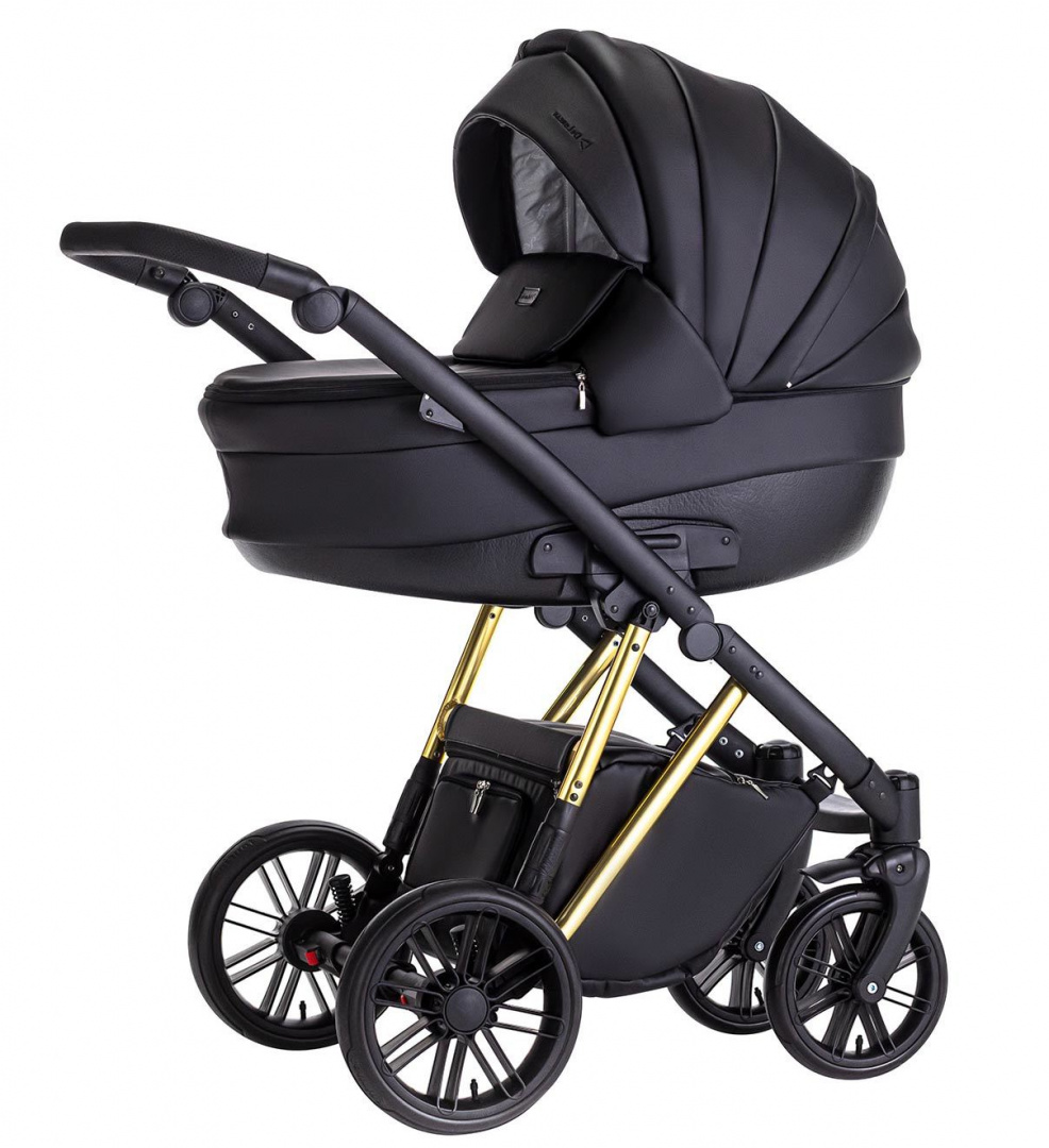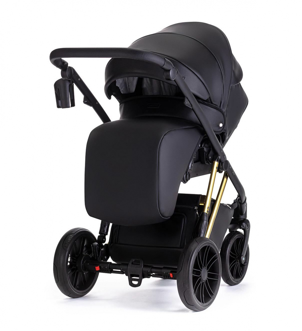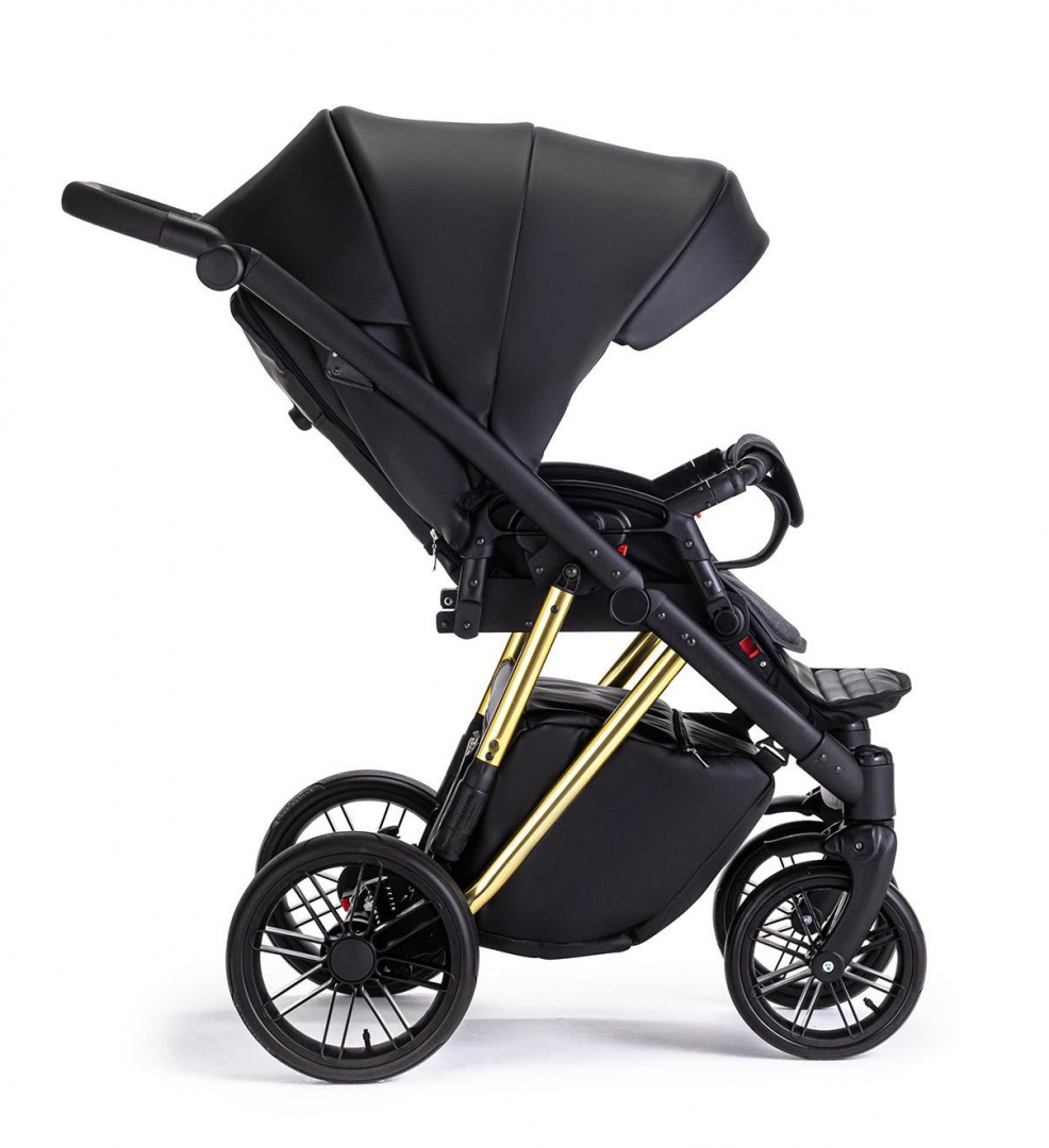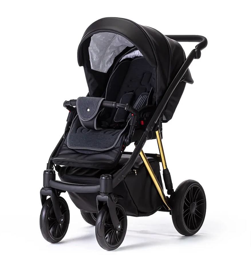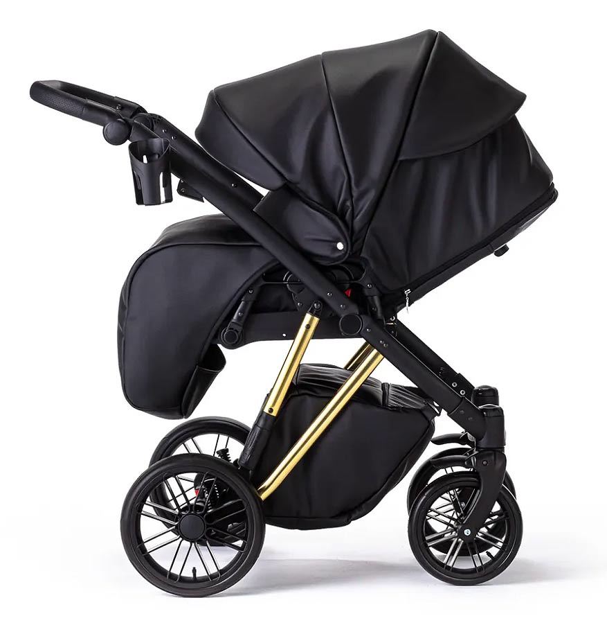 - Большая пластиковая люлька обтянутая перфорированной эко кожей (низ люльки) и высококачественной тканью на капюшоне с декоративными элементами из эко кожи.