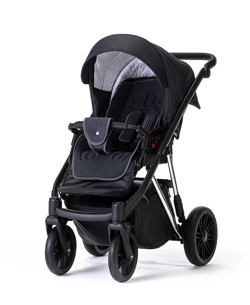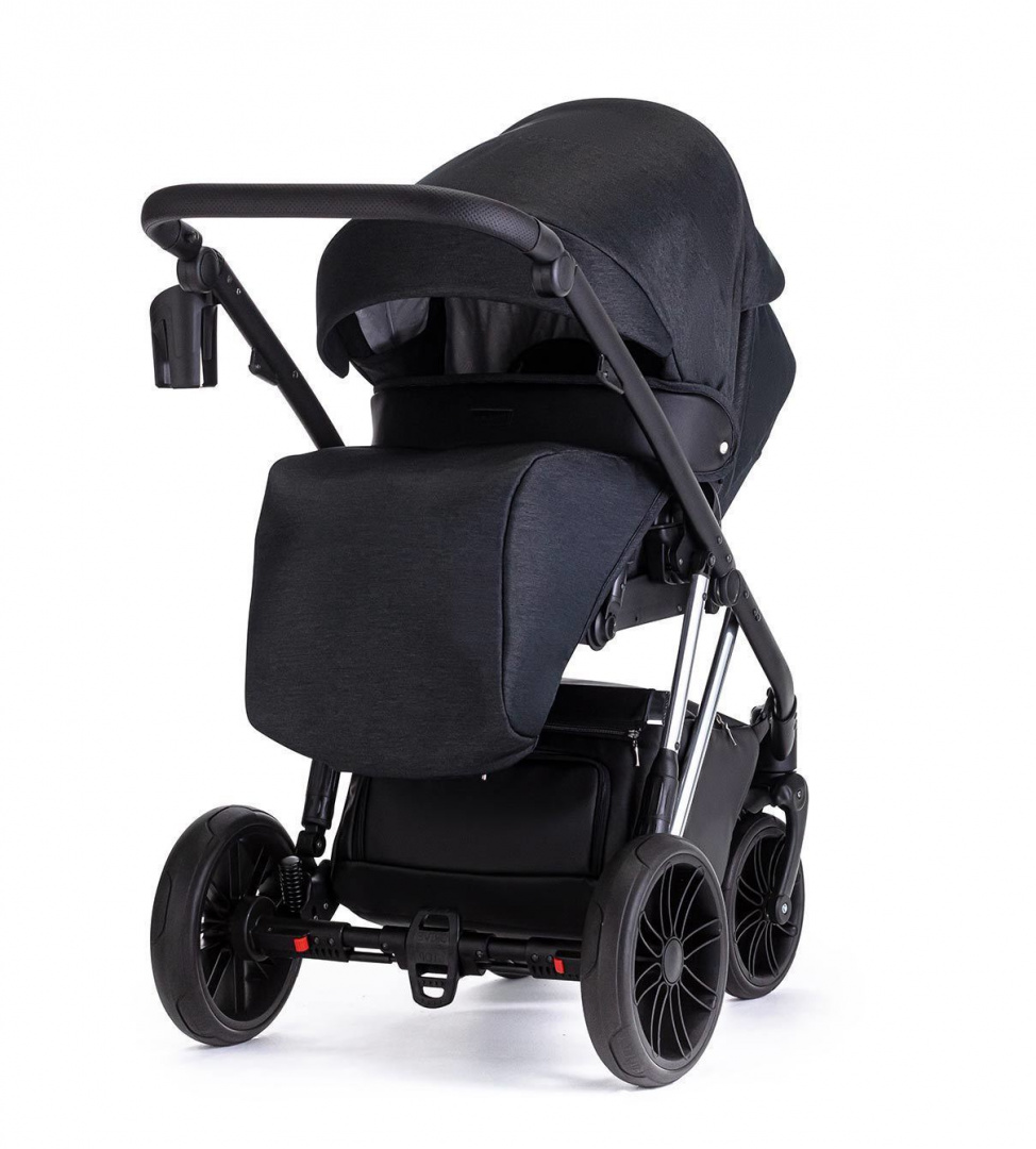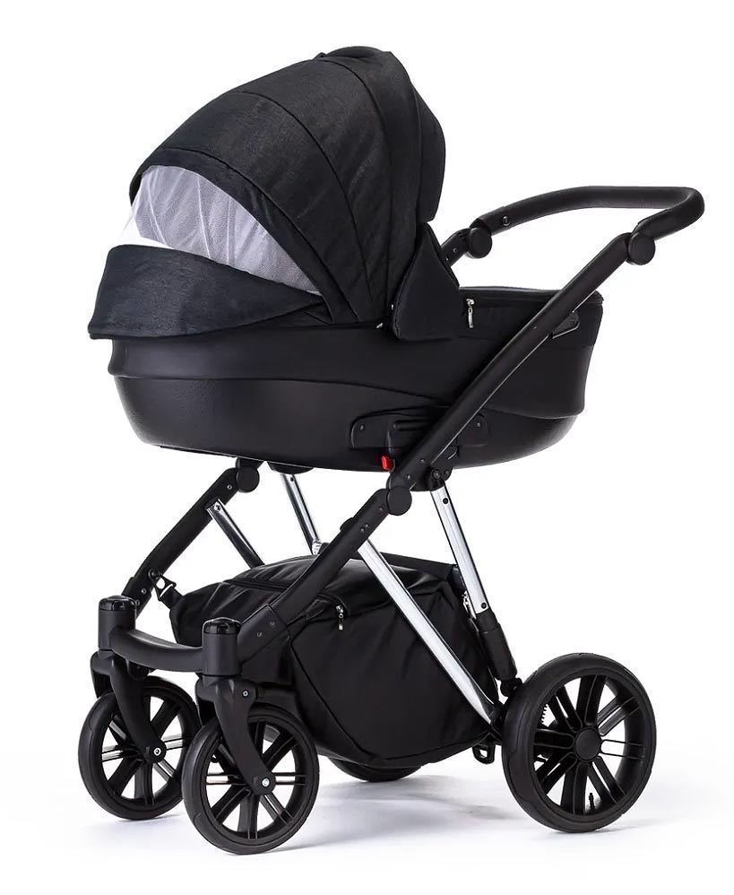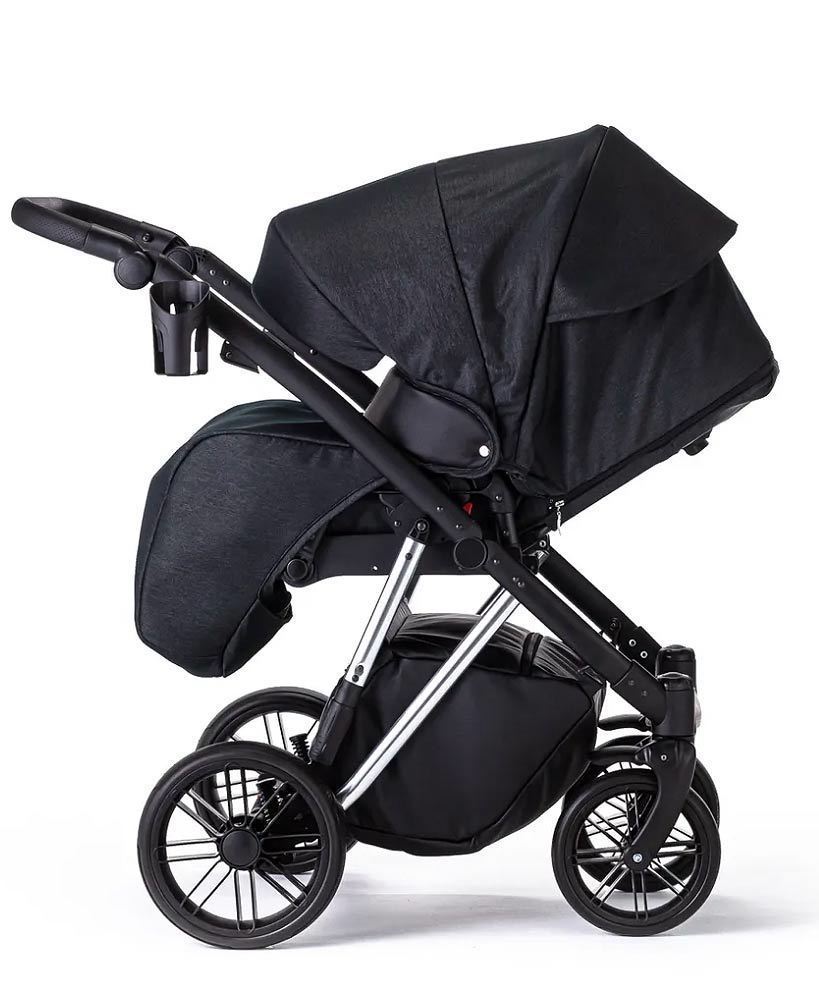 - Большая пластиковая люлька обтянутая перфорированной эко кожей (низ люльки) и высококачественной тканью на капюшоне с декоративными элементами из эко кожи.