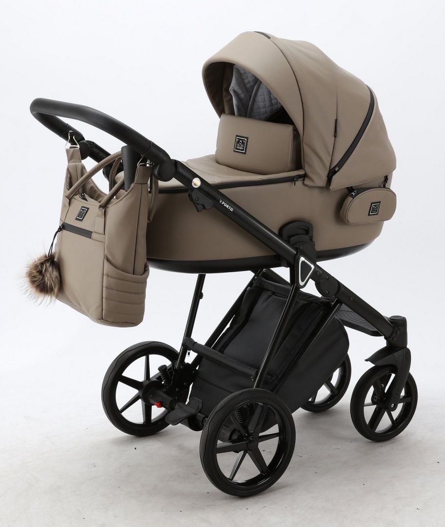 Детская модульная коляска Adamex Porto Deluxe 3 в 1 полностью обшита высококачественной эко-кожей.