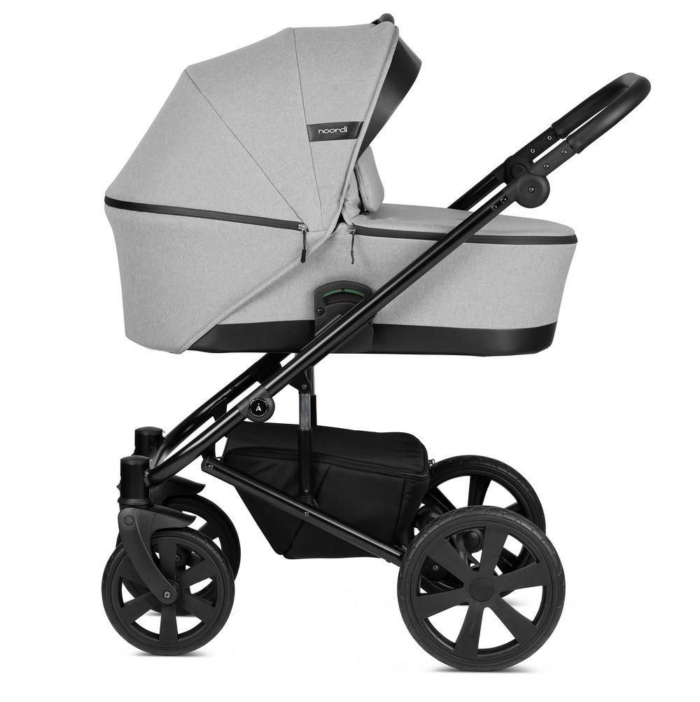 Команда инженеров сосредоточилась на надежности, компактности и простоте при разработке шасси Aqua. Поэтому новое шасси Noordi занимает очень мало место и легко складывается, что обеспечивает комфорт для родителей ребенка. Новое шасси складывается также вместе с прогулочным блоком, что еще больше облегчает жизнь родителей. В сложенном виде вместе с прогулочным блоком оно занимает всего 39 см, поэтому поместится даже в самом маленьком автомобиле. Интеллектуальная система амортизации приспосабливается к меняющемуся весу ребенка и обеспечивает плавное движение по любой дороге