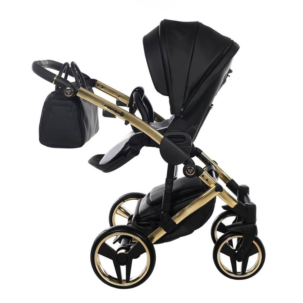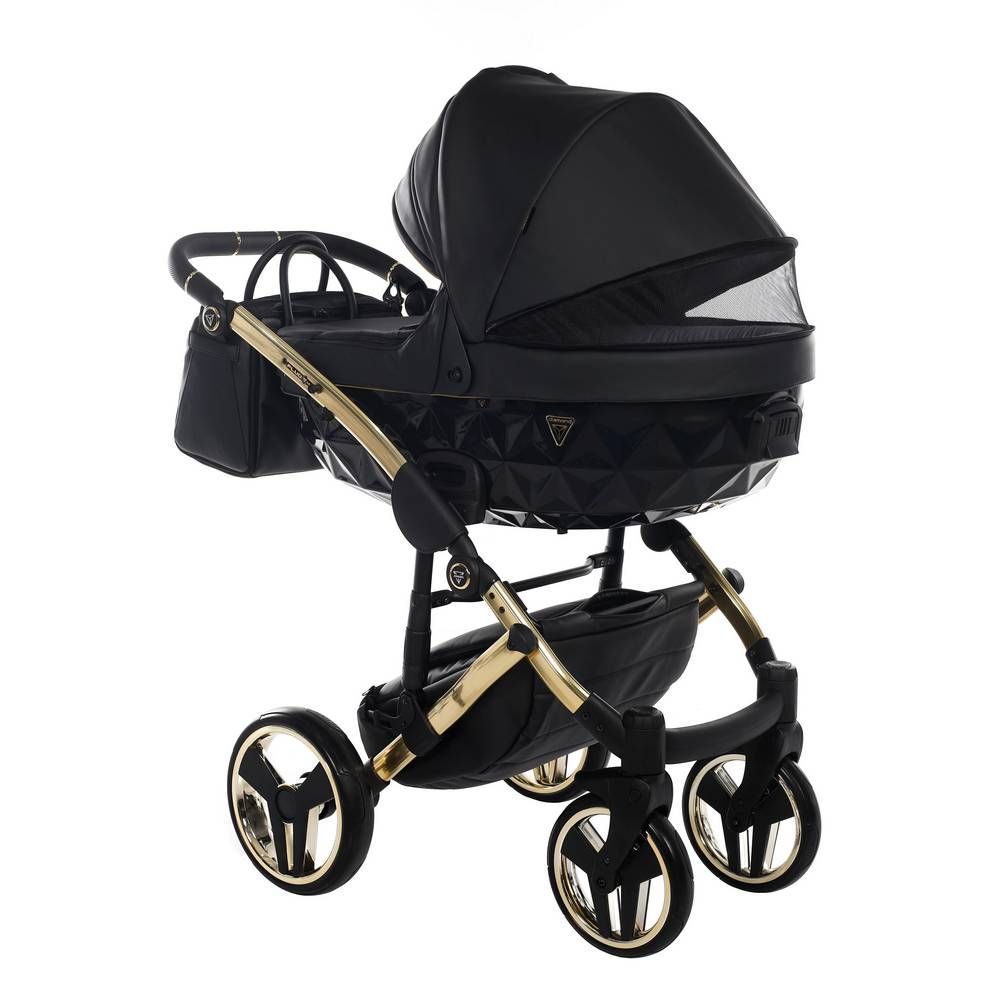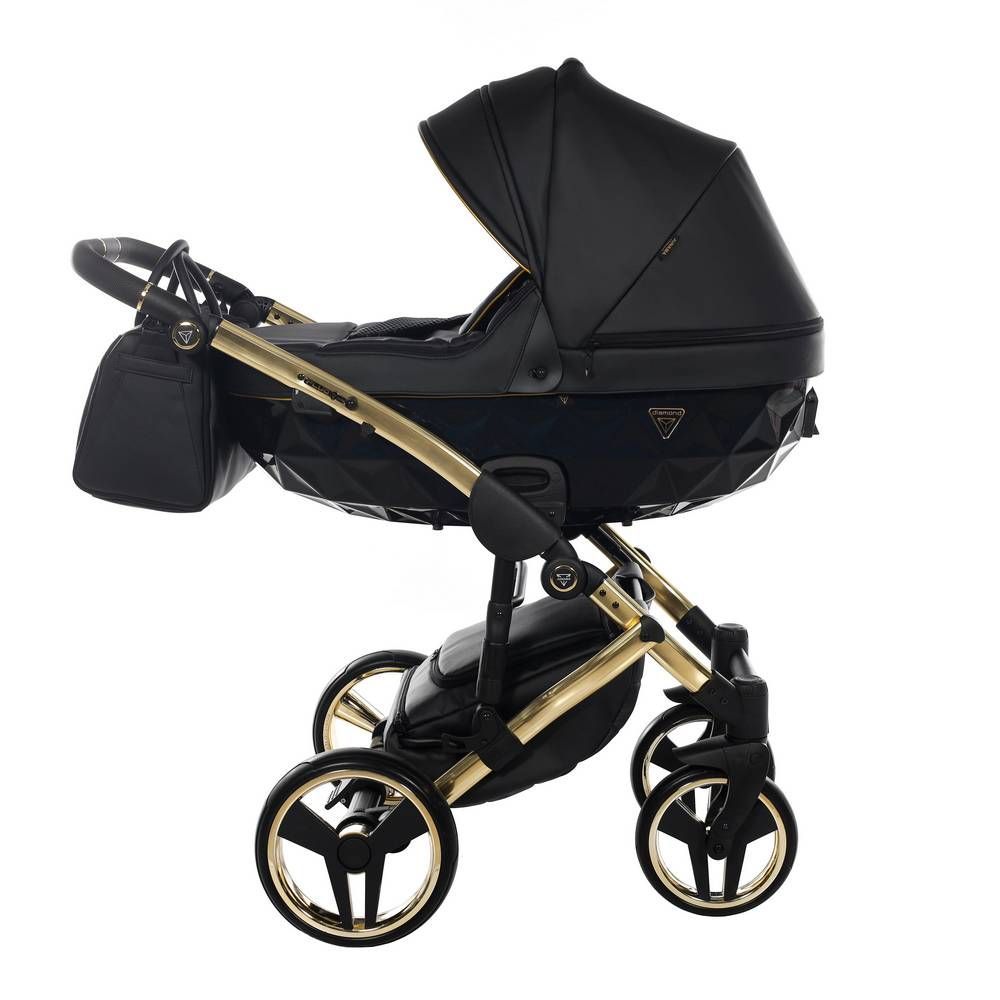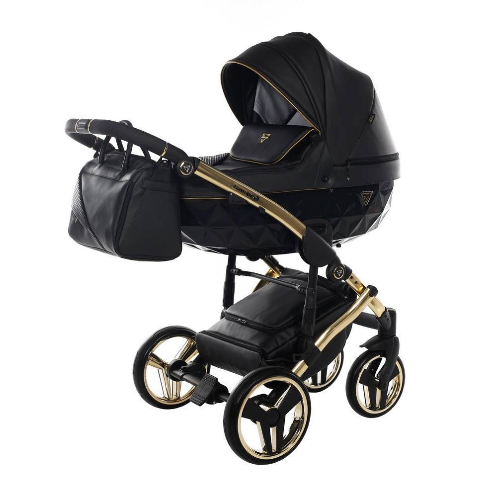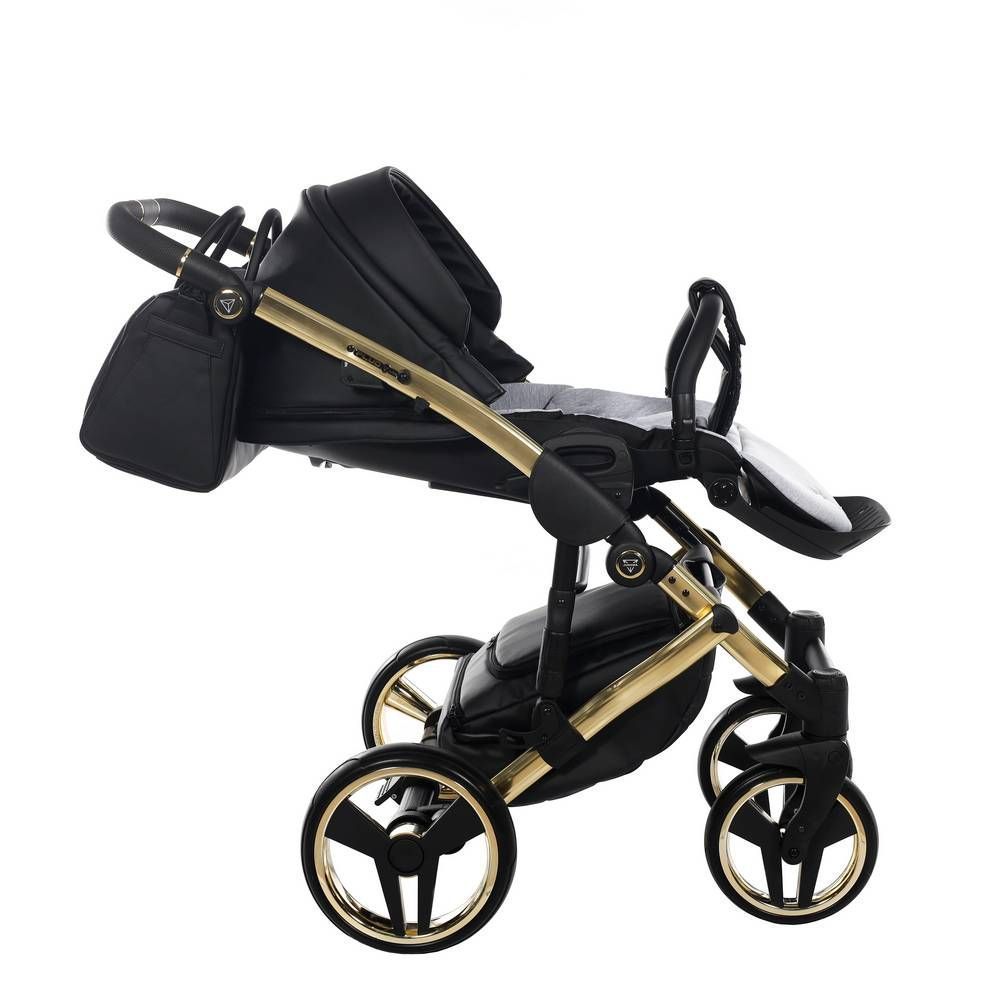 Современные технологии в коляске FLUO LINE версия 2022 удивительным образом сочетаются с элегантностью оформления. Люлька выполнена из полированного пластика в форме бриллианта, который не только прекрасно смотрится, но и защищает малыша от любого ветра, а капюшон и накидка из экокожи отделаны золотом или серебром в цвет рамы коляски.