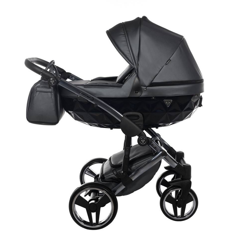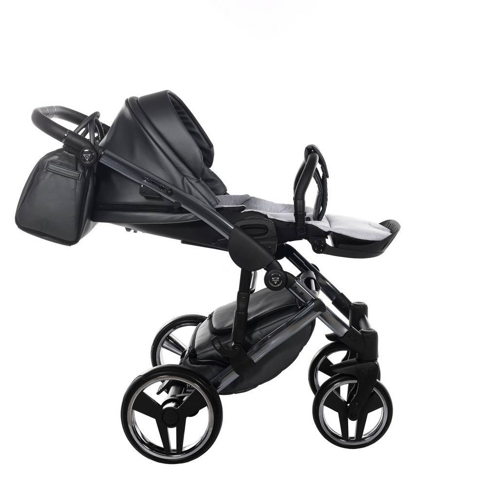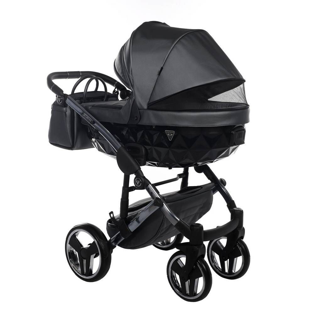 Современные технологии в коляске FLUO LINE версия 2022 удивительным образом сочетаются с элегантностью оформления. Люлька выполнена из полированного пластика в форме бриллианта, который не только прекрасно смотрится, но и защищает малыша от любого ветра, а капюшон и накидка из экокожи отделаны золотом или серебром в цвет рамы коляски.