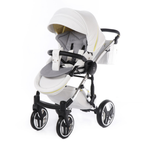 Бриллиантовый короб коляски Junama Candy напоминает вкусный, сладкий, сливочный леденец. А блестящая и придающая элегантный стиль хромированная рама создает нежный образ коляски.