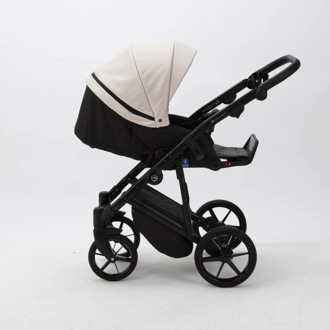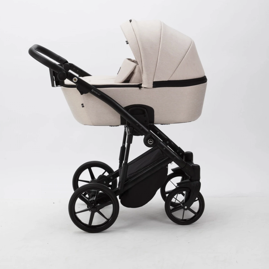 Универсальная всесезонная коляска получила инновационную термолюльку с усиленными защитными и изоляционными свойствами. Технологичный синтетический материал PIOCELAN – легкий и прочный инновационный наполнитель, обладающий уникальными свойствами теплового, акустического, энергетического изолятора. В конструкциb шасси использовались практичные бескамерные колеса, не требующие обслуживания, новая система амортизации, надежные «отзывчивые» тормоза. Прогулочная коляска складывается одной рукой вместе с сиденьем, независимо от его расположения.