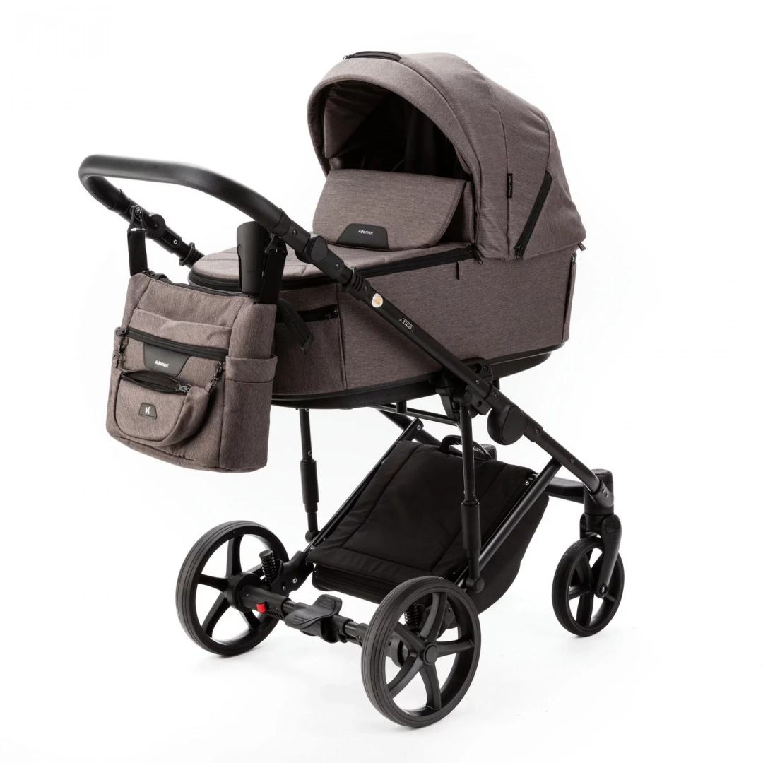 Adamex Zico New оснащена легкой люлькой (всего 4 кг), которая плоско складывается, экономя место при хранении. Чехол люльки застегивается на двустороннюю молнию, а в ветрозащите чехла имеется силиконовое окошко, позволяющее сохранять постоянный визуальный контакт с ребенком.