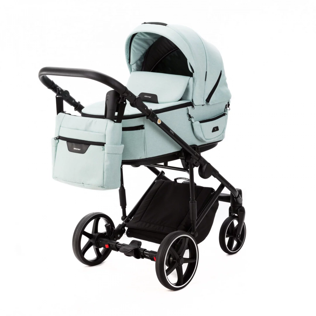 Adamex Zico New оснащена легкой люлькой (всего 4 кг), которая плоско складывается, экономя место при хранении. Чехол люльки застегивается на двустороннюю молнию, а в ветрозащите чехла имеется силиконовое окошко, позволяющее сохранять постоянный визуальный контакт с ребенком.