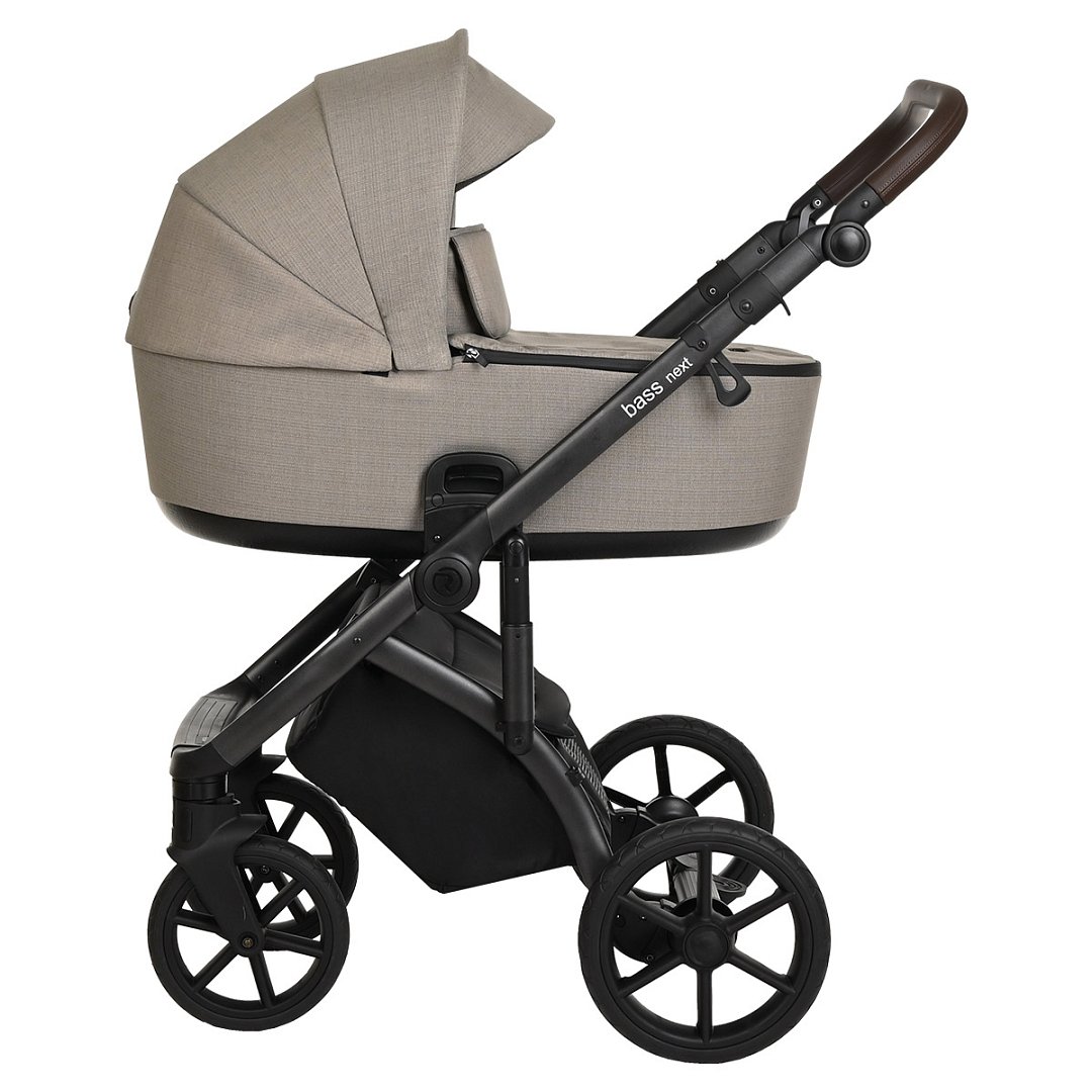 Cистема SAS-4 амортизаторов, расположенных на задних колёсах и на стойках шасси, позволяет настраивать плавность хода, а благодаря возможности отключения амортизации на стойках, вы можете легко приспособить коляску к любым дорожным условиям. Bass Next мягко и плавно едет даже по бездорожью, бережно охраняя сон новорожденного. Большие колеса с непрокалываемыми покрышками долговечны и надежны. Передние колёса с системой «анти-шок» вращаются на 360 градусов, с возможностью фиксации в прямом положении.