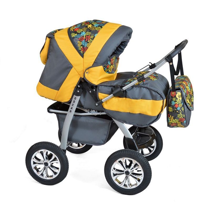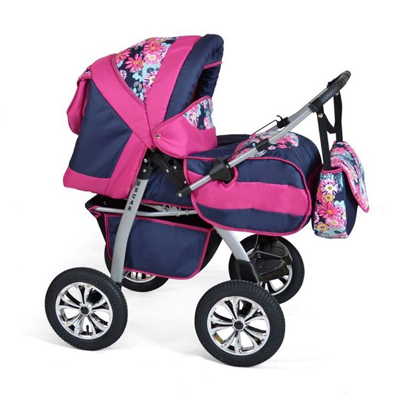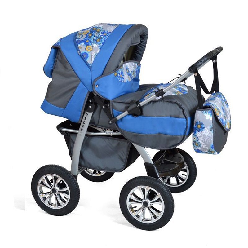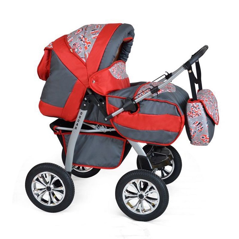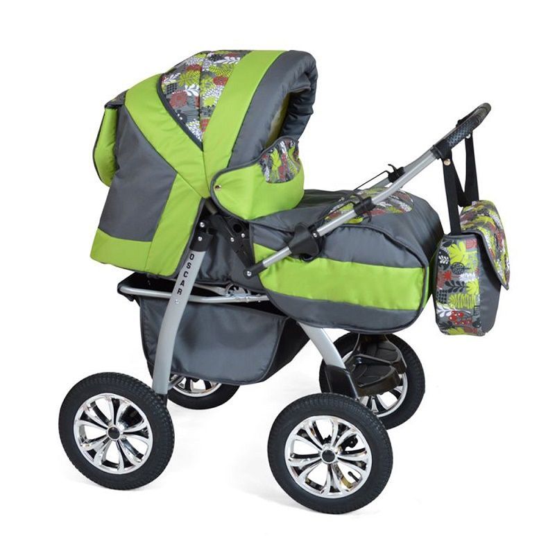 Трансформер OSCAR PC – это взрыв позитивных эмоций. Даже при использовании темных тонов в дизайне коляска выглядит привлекательно за счет очень ярких вставок. Для регионов, где большую часть года за окном превалируют серые краски, это особенно актуально. Надо же где-то черпать хорошее настроение! Модель достаточно компактная, но имеет большие колеса с хорошей амортизацией. Отметим крайне удобную и очень большую (относительно других моделей) сумку для вещей.