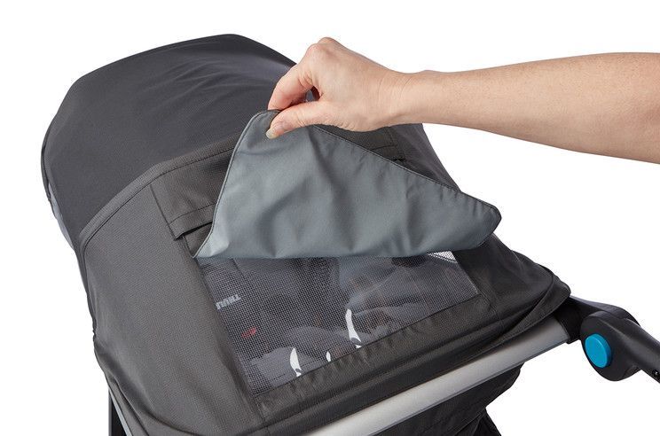 - Капюшон, который можно раскладывать в различных позициях обладает боковыми окошками для вентиляции и комфорта вашего ребенка.