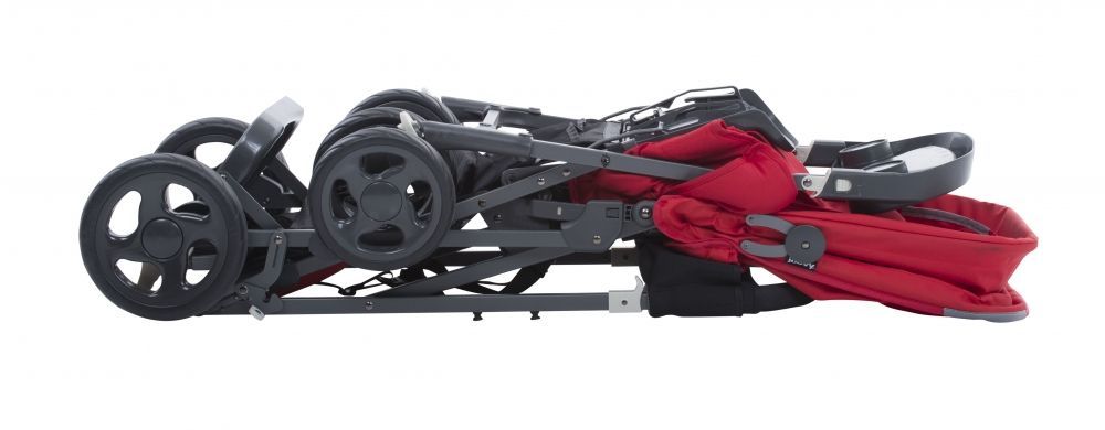 Коляска Joovy Caboose Ultralight не только мало весит, но и легко компактно складывается. Вы можете взять ее с собой, просто поместив в багажник автомобиля. Все 4 колеса с мягкой подвеской, чтобы малышам было максимально комфортно гулять. Передние колеса поворотные с возможностью фиксации, а на задних находится стояночный тормоз. В центре рамы закреплена просторная корзина для вещей и покупок. Для безопасности в темное время суток конструкция оборудована светоотражающими элементами.