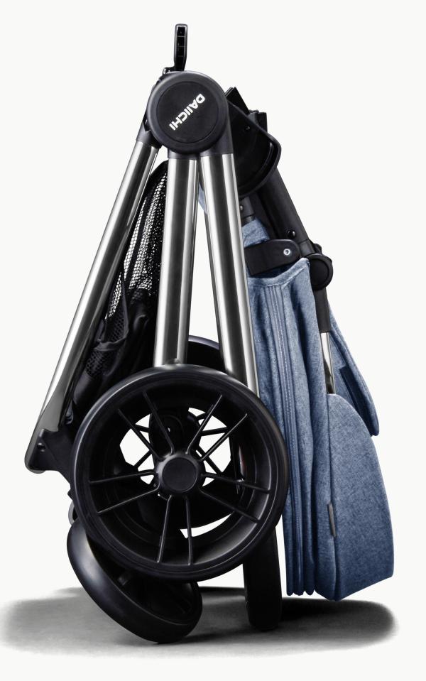 - Чтобы сложить коляску, сиденье не надо снимать с шасси.