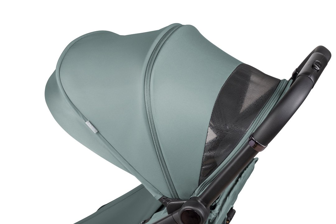 • Инновационный капюшон с панорамной вентиляцией. Оснащен окошком для наблюдения за ребенком (peek-a-boo), а также регулируемыми панорамными отверстиями для притока свежего воздуха и складным козырьком от солнца.