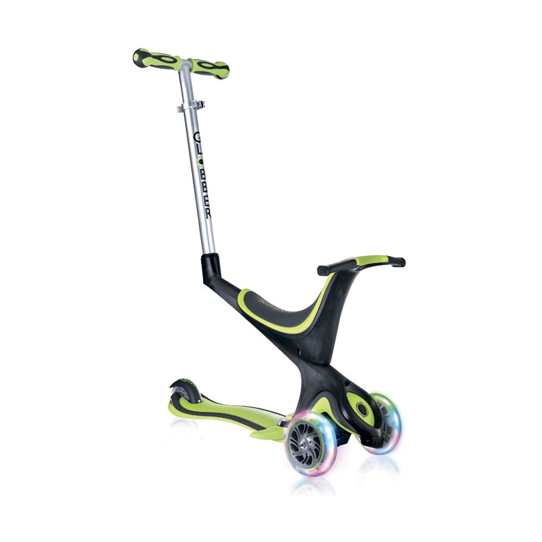 <span style="font-size: 12pt;">Самокат Globber Evo 5 in 1 Lights (Эво Лайт 5 в 1) создан для юных райдеров 1-6 лет. Он способен подарить массу веселья во время катания, поскольку оснащён колёсами со встроенными светодиодами. Они ярко светятся и не требуют подзарядки. Модель Глоббер ЭВО 5 в 1 Лайт имеет практичную трансформируемую конструкцию. Самокат легко превращается в беговел, каталку с удобной ручкой для родителей или трёхколёсный кикборд. Обладатель престижной награды ToyAward в 2016 году прославился благодаря своему продуманному дизайну. <br><br />