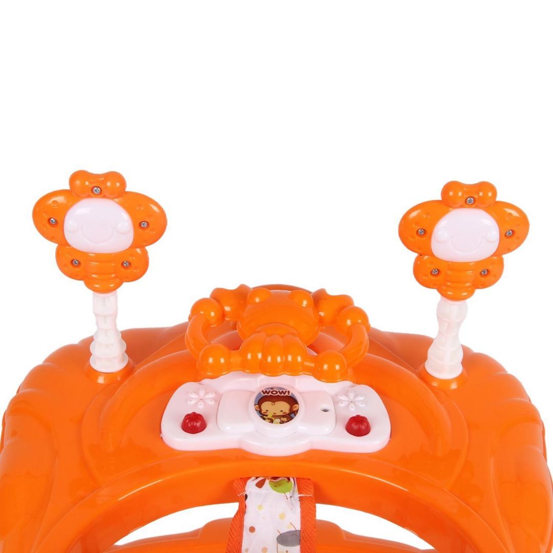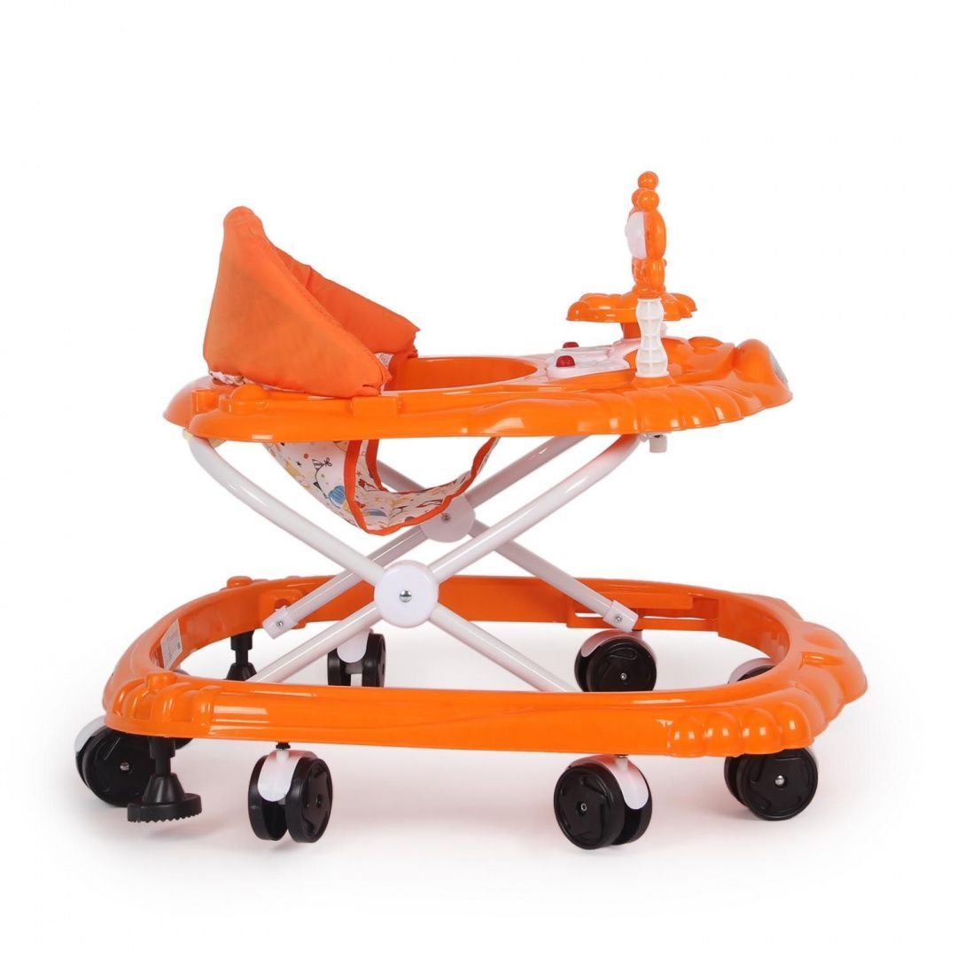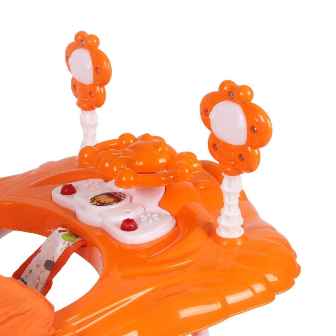 На ходунках имеются световые и музыкальные элементы, которые развлекут кроху. Несколько уровней по высоте позволят подобрать соответствующий комплекции ребенка.